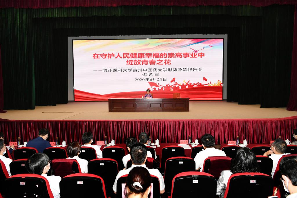 6月23日,省委副书记、省长谌贻琴来beat365调研,看望援鄂医疗队队员代表,并为师生作形势政策报告。省长以“在守护人民健康幸福的崇高事业中绽放青春之花”为题,围绕“国家抗击疫情”“贵州经济社会大踏步前进”“新时代青年追梦奋斗”三个方面,与师生作了交流,深情寄语新时代青年:心中有火、眼中有光,努力学习、不负韶华,脚踏泥土、服务基层,乐观豁达、心存静气,始终与国家发展同行、与民族复兴同进,为实现中华民族伟大复兴中国梦贡献青春智慧、青春力量。报告思想深刻、内容丰富,具有很强的理论性和指导性,引起了在场师生代表700余人的强烈反响。