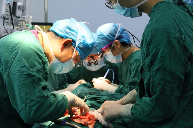 此次手术由口腔颌面外科修复重建主任刘睿团队联合口腔修复科主任董强团队共同操刀,历时一天,成功完成了迄今为止贵州省首例数字化外科技术引导下行“下颌骨肿物扩大切除术+游离血管化髂骨肌瓣切取移植术+面部微小动静脉吻合术+同期种植体植入术”。
