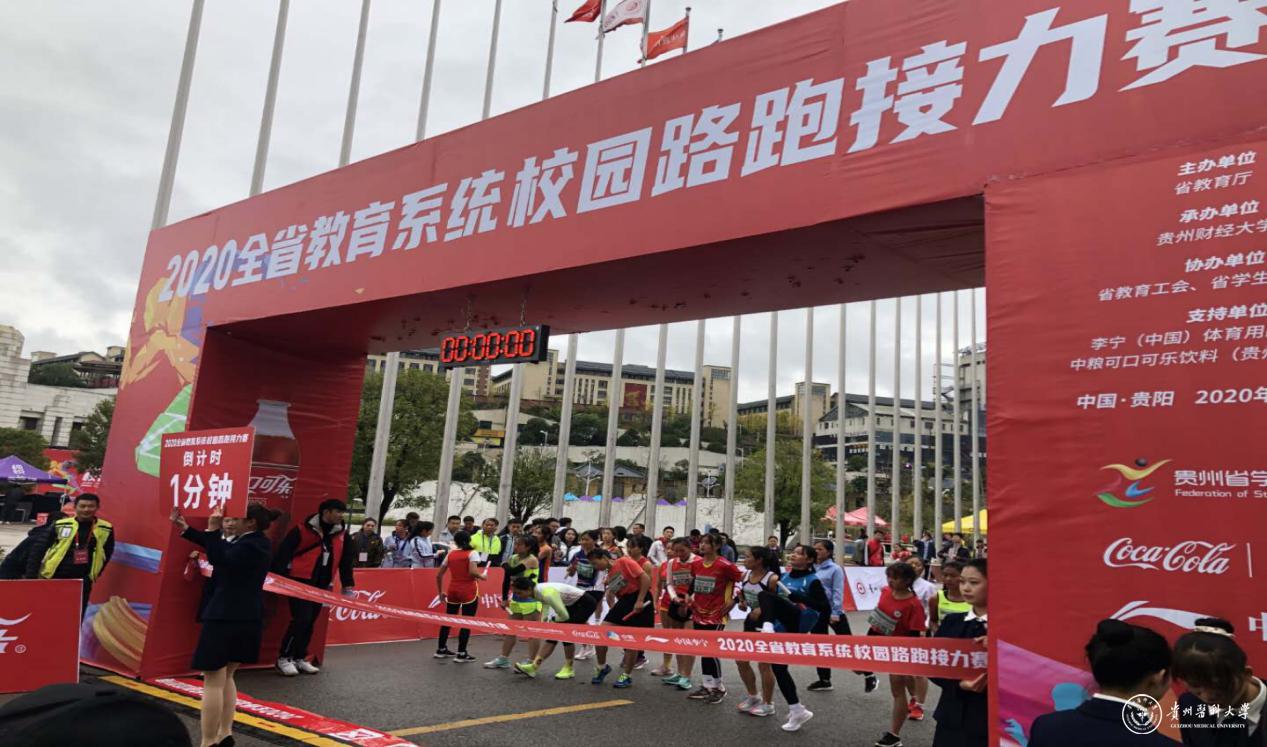 10月17日,由贵州省教育厅主办的2020年全省教育系统校园路跑接力赛在贵州财经大学广场开幕。来自全省高校共计41支大学生参赛队伍汇聚一堂。