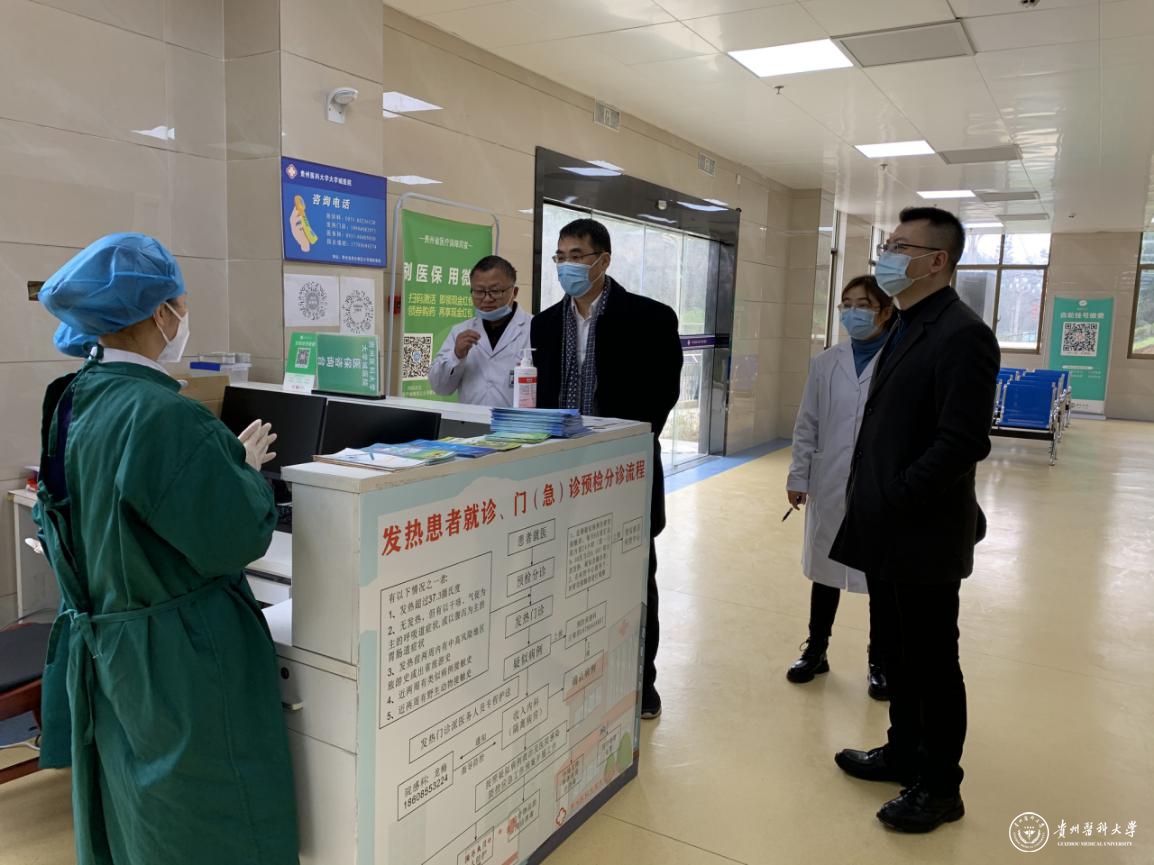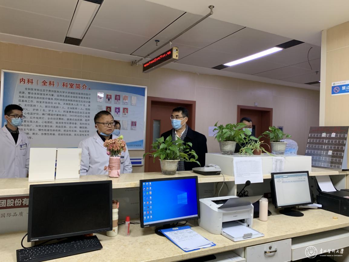 2月12日,大年初一,校党委副书记、校长罗鹏来到beat365正版唯一官网必一大学城医院,慰问并视察春节医护的工作情况,大学城医院院长唐学杰、财务科负责人陈丽汇报有关情况。