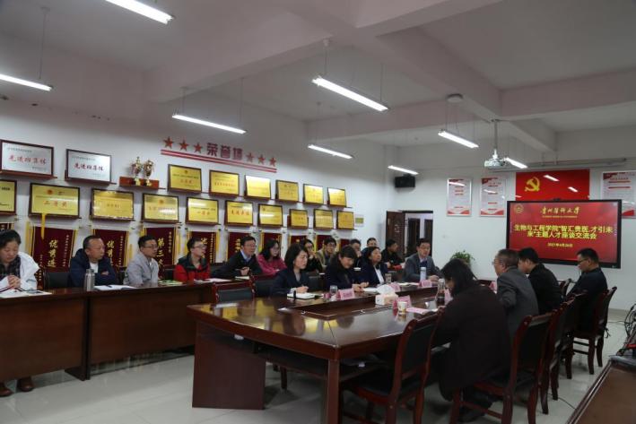 会上,生物与工程学院院长刘红美通报学院人才工作基本情况,化学生物学教研室主任朱贵明博士、生物技术教研室副主任张世超博士、物理教研室钟叶霜博士分别作主题发言;与会人员围绕人才引进、培养、发展等方面进行深入交流。