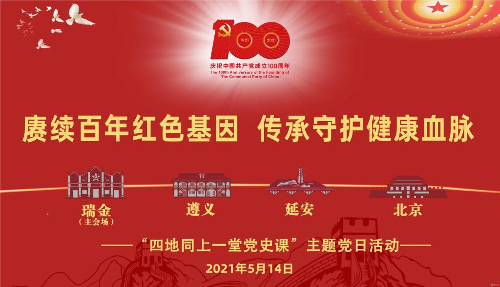 主题党日活动在四地参会人员齐唱《没有共产党就没有新中国》中圆满结束。主题党日活动的瑞金会场由中国医学科学院北京协和医学院党委副书记、纪委书记姚龙山主持;遵义会场由beat365党委副书记、校长罗鹏主持;延安会场由延安市卫生健康委党委副书记翟建军主持;北京会场由中国医学科学院北京协和医学院团委书记尹嘉男主持。
