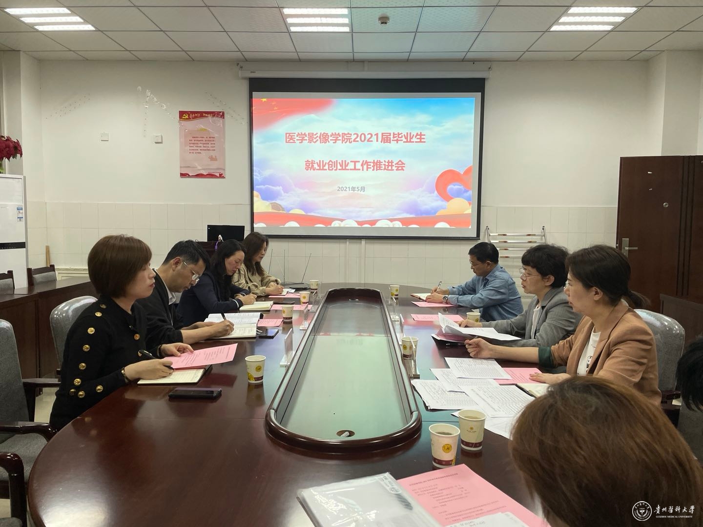5月18日,医学影像学院2021届毕业生就业创业工作推进会在北京路校区基础二号楼八楼会议室召开。校党委委员、附属医院党委书记刘文出席,教务处副处长卢雨薇、资助管理中心副主任贲琛、招生就业处就业指导中心主任余小川,学院党政班子以及相关老师参会。会议由医学影像学院党委书记李雪梅主持。