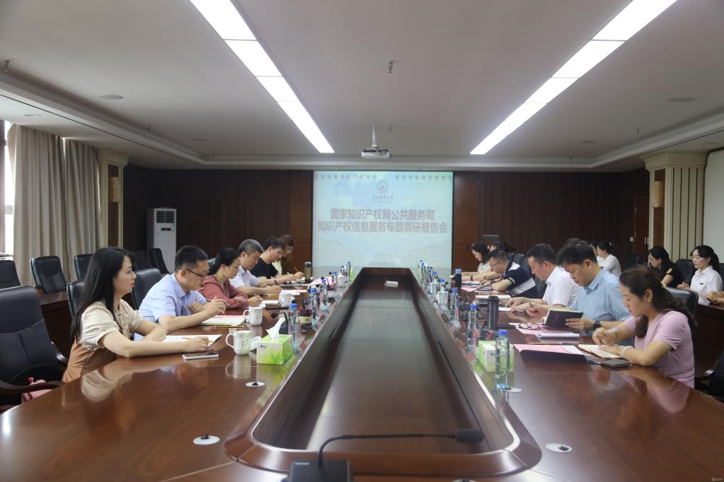 6月22日,国家知识产权局公共服务司副司长刘毅、国家知识产权局知识产权发展研究中心研究一处处长邓仪友、国家知识产权局公共服务司一级主任科员王宝龙及干部刘娜到校开展知识产权信息服务调研,贵州省知识产权局知识产权战略处相关负责人及工作人员陪同。调研汇报会在南校区行政楼7楼会议室举行,副校长汤磊出席并主持会议,相关部门负责人参加。