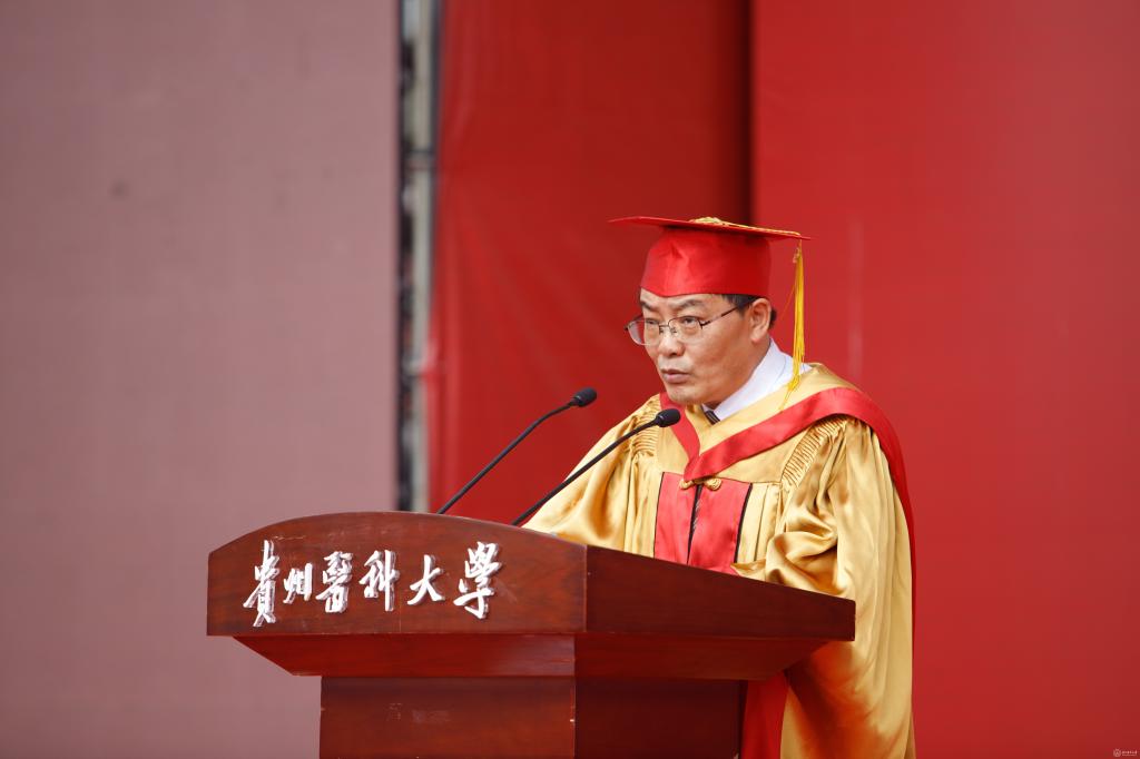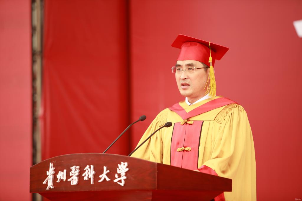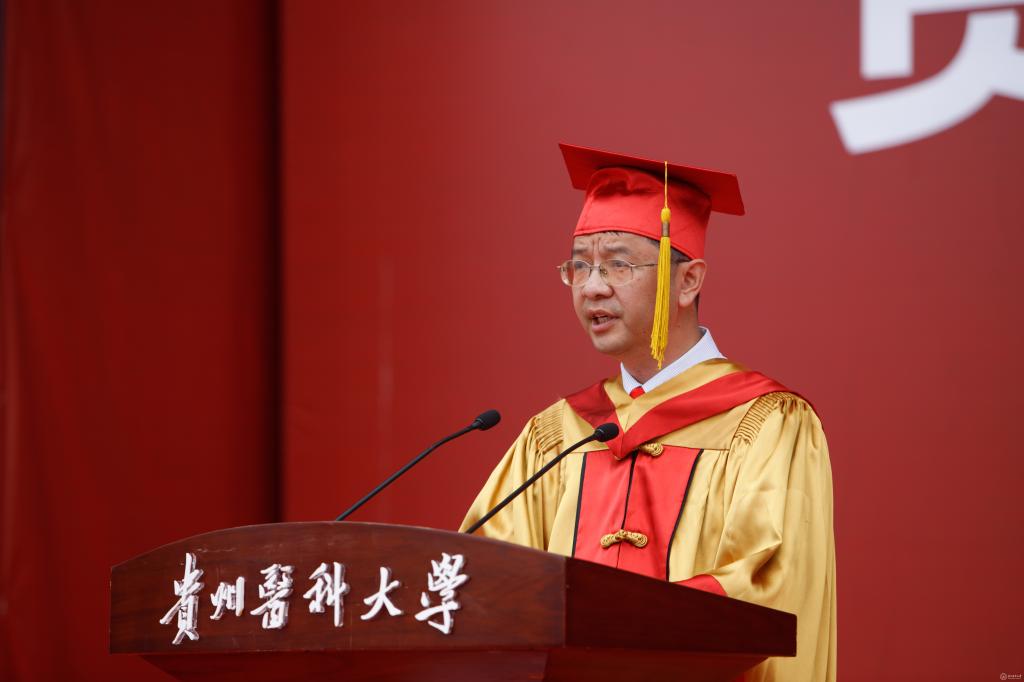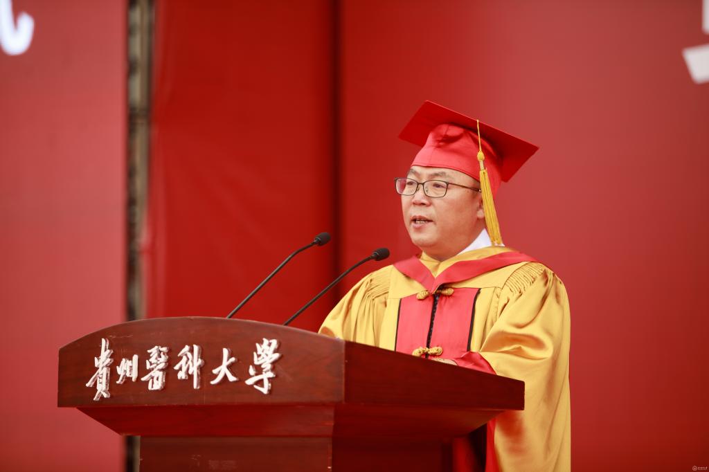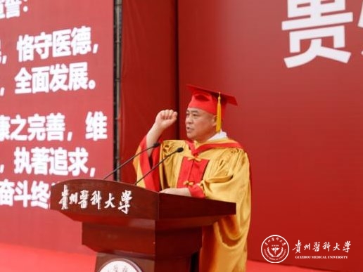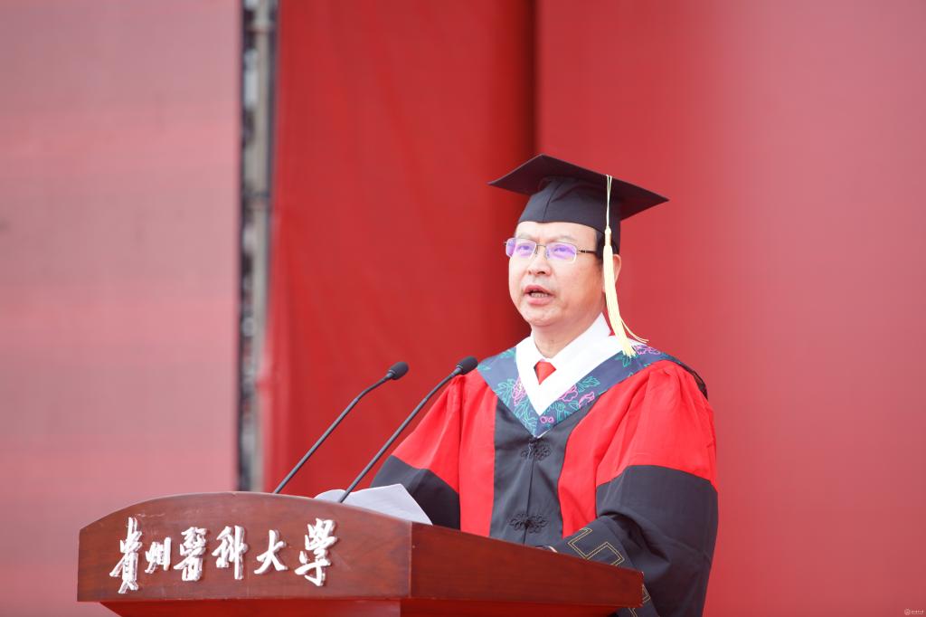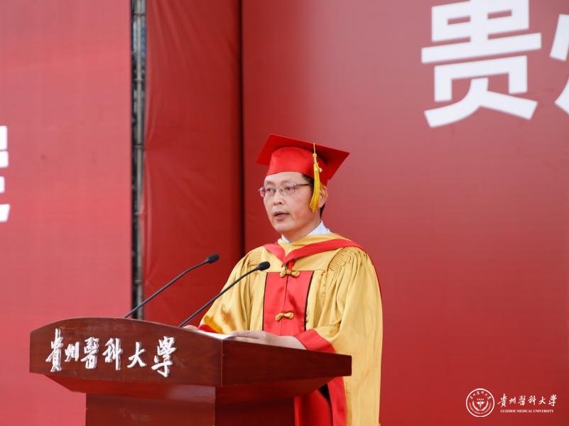 校党委副书记、校长罗鹏致辞,祝贺2021届毕业生顺利完成学业,逐梦新的人生征程。他指出,在全面建设社会主义现代化国家新征程的当下,于百年未有之大变局中,同学们即将走出校园融入社会,将面临前所未有的机遇和挑战,激励同学们把自身小我融入祖国大我之中、将个人理想融入到祖国发展的历史洪流中,融入人民前进的伟大步伐中,为祖国发展助力、为民族复兴添彩。罗鹏寄语毕业生:做心中有梦,志存高远,有理想抱负的贵医人;做眼里有光,守正创新,有卓越追求的贵医人;做医者仁心,行中有善,有高尚德行的贵医人;做脚下有力,奋进实干,有责任担当的贵医人。