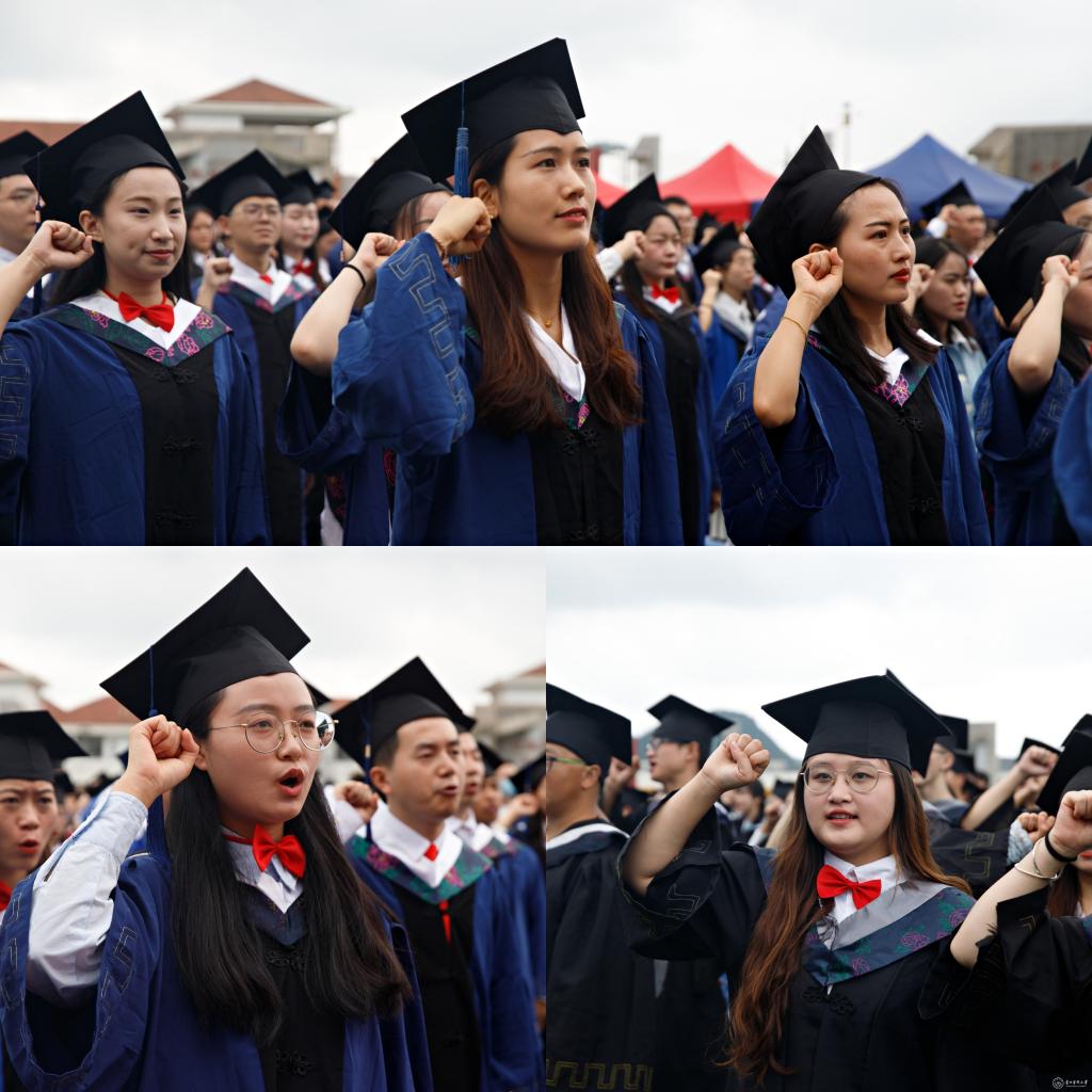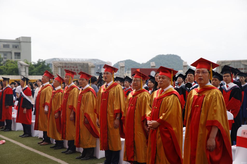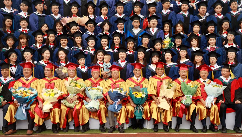 学位授予仪式上,校领导及主礼教授为全场毕业生逐一行拨穗礼,并合影留念。