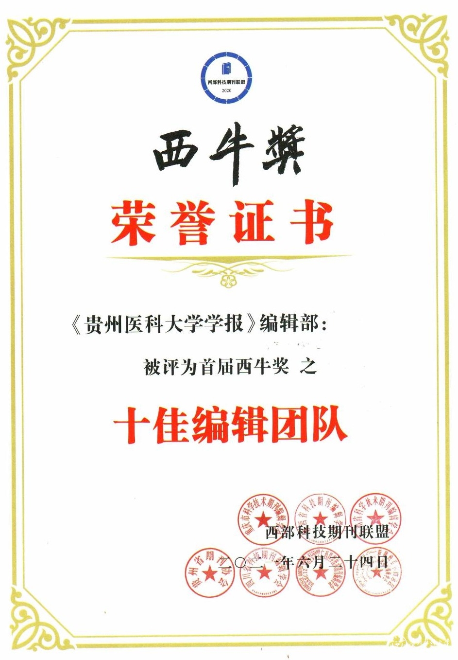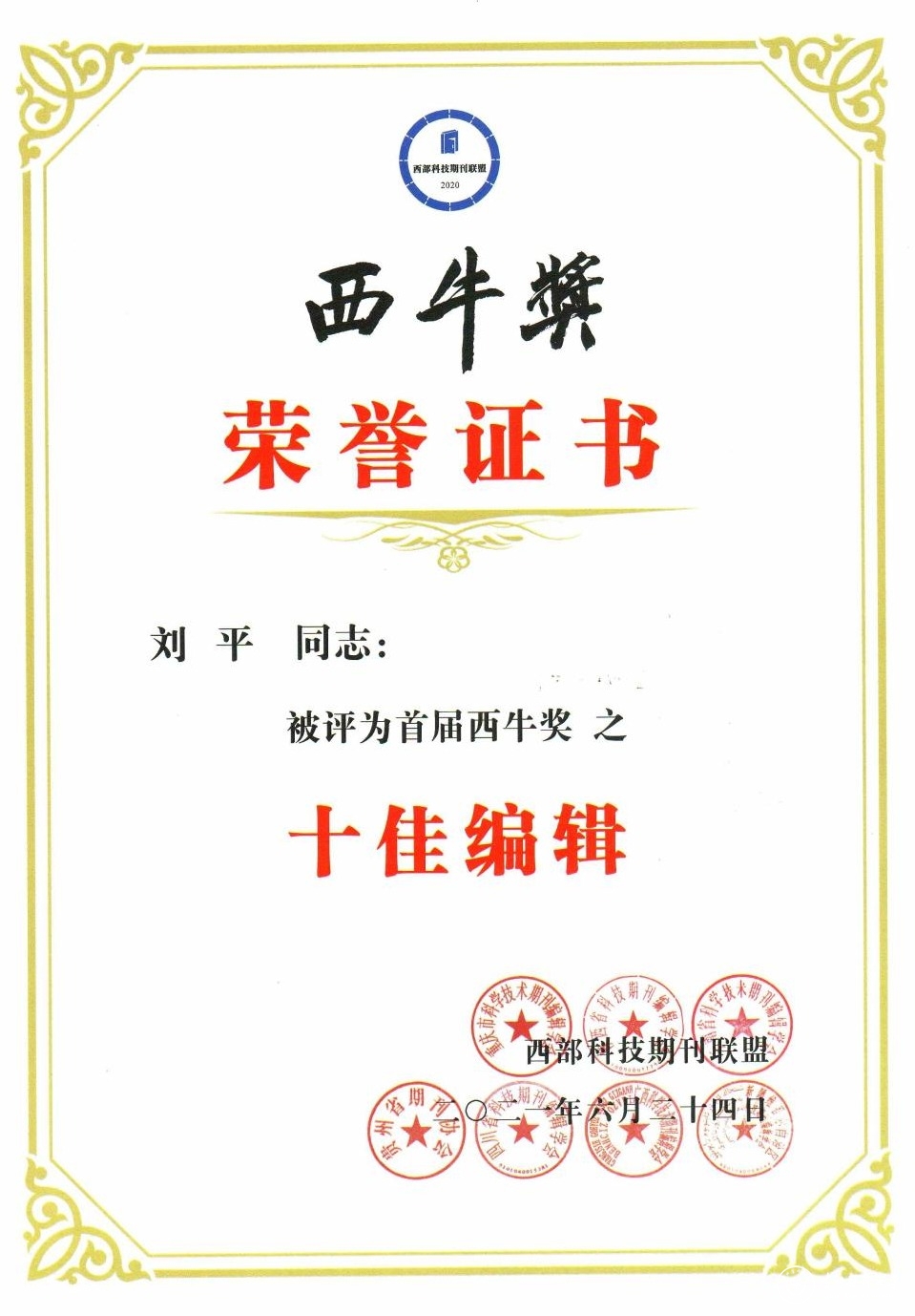 首届西牛奖颁奖典礼上,《beat365正版唯一官网必一学报》编辑部荣获“十佳编辑团队”和“十佳编辑”两个奖项。