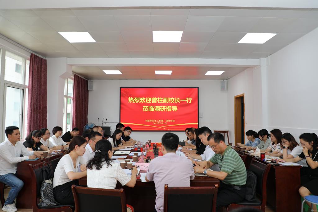 7月1日,副校长曾柱带领学校相关职能部门和各研究生培养学院负责人到党委研究生工作部、研究生院调研指导工作,并召开座谈交流会。党委研究生工作部、研究生院全体人员参加。