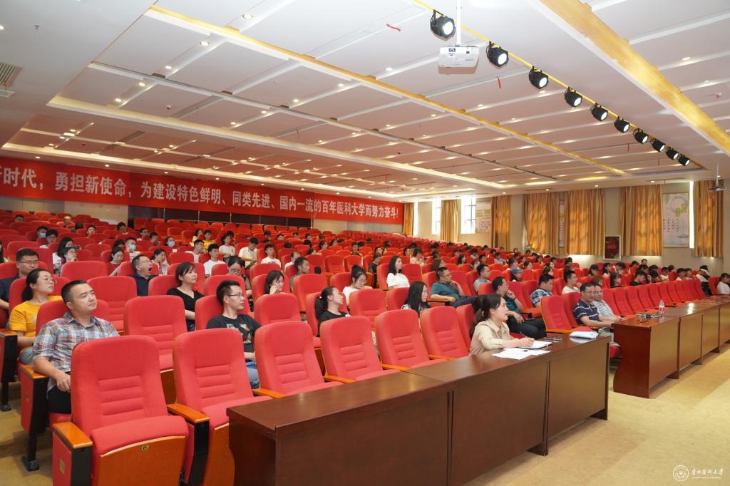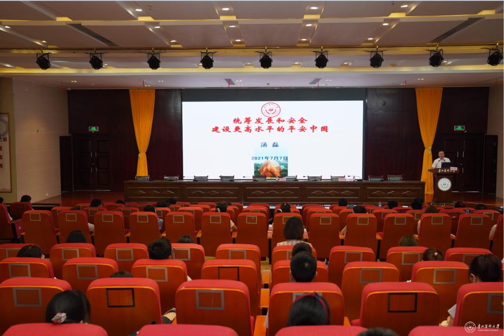 7月7日,副校长汤磊在南校区道德讲堂作题为《统筹发展和安全,建设更高水平的平安中国》党课。药学院党员师生、副科级以上干部参加,药学院党委书记高秀丽主持。