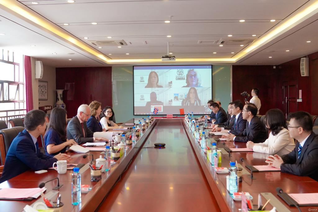 签约仪式在南校区知雨楼6楼会议室举行。罗鹏代表学校表示欢迎,介绍了学校与英国的交流情况,表示对本校与坎布里亚大学的合作、与英国高校之间的合作前景充满信心。