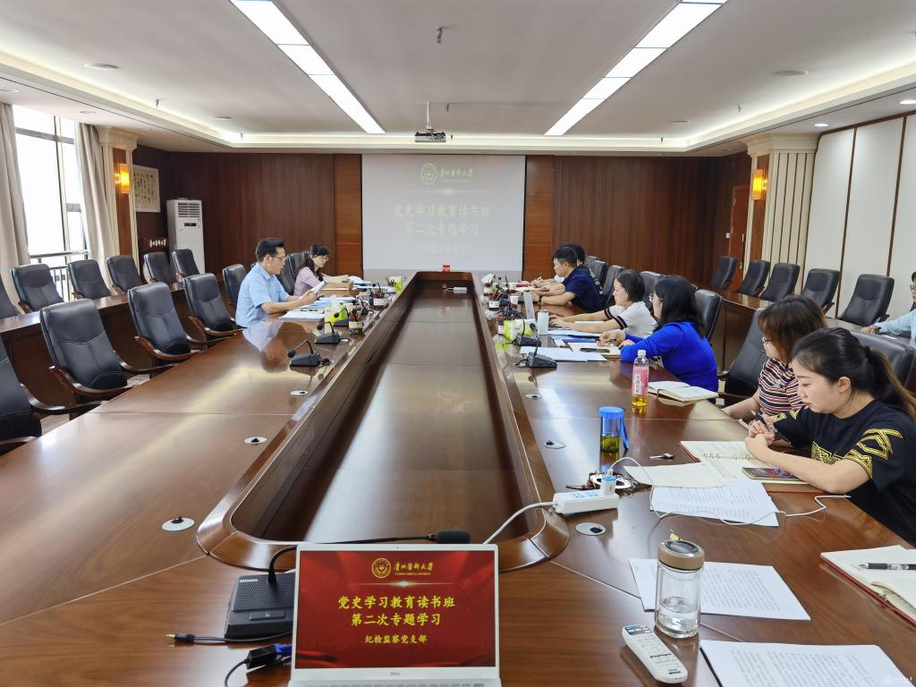 9月13日,纪检监察党支部举行党史学习教育专题读书班第二次学习研讨,围绕习近平总书记在庆祝中国共产党成立100周年大会上的重要讲话中“五个庄严宣告”和“九个必须”进行深入学习、交流研讨。省纪委省监委派驻beat365正版唯一官网必一纪检监察组组长陈代勇以普通党员身份参加,支部书记岳萍主持。