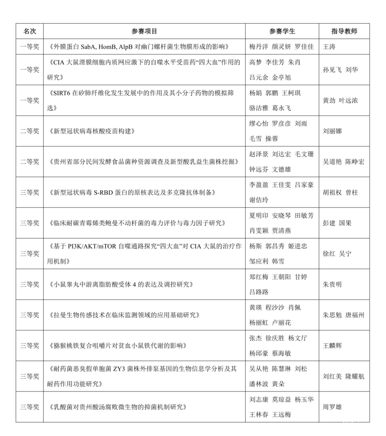 附:第三届贵州省大学生生命科学竞赛暨第五届全国大学生生命科学竞赛(贵州赛区)决赛beat365获奖名单