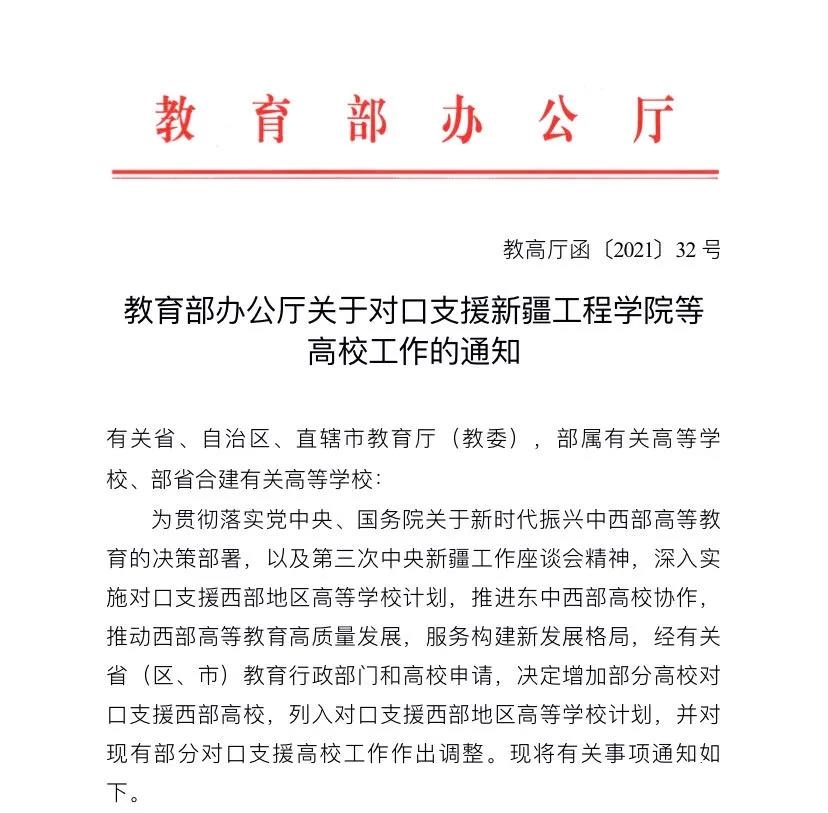 日前,教育部办公厅下发关于对口支援新疆工程学院等高校工作的通知,beat365被增列为教育部对口支援西部地区高等学校计划高校之一,由北京协和医学院对口支援beat365。