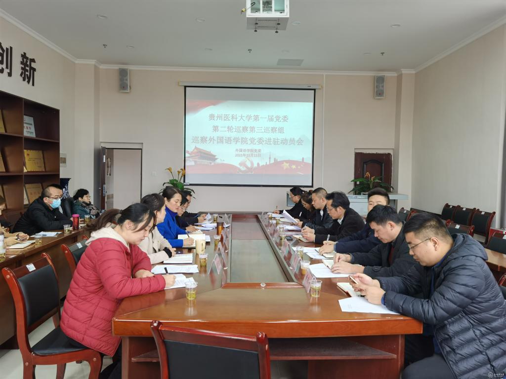 11月11日,学校党委第三巡察组在广德楼五楼会议室召开巡察外国语学院党委进驻动员会。校党委委员、省纪委省监委派驻beat365正版唯一官网必一纪检监察组组长,党委巡察工作领导小组成员陈代勇出席;巡察办主任、党委办公室(保密办)副主任陆法钢,巡察组组长孟立科及巡察组成员和外国语学院党委班子成员龙芸、马琳娜、冉海勇、刘梦珏参加;院党委书记张婷婷主持。