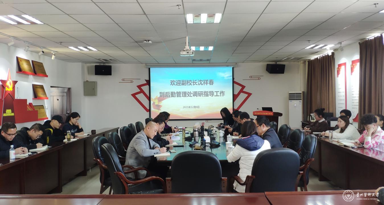 12月6日,副校长沈祥春带队到后勤管理处调研指导工作,后勤管理处班子成员、副科级以上干部参加会议。会议由后勤管理处党总支书记张玲玲主持。