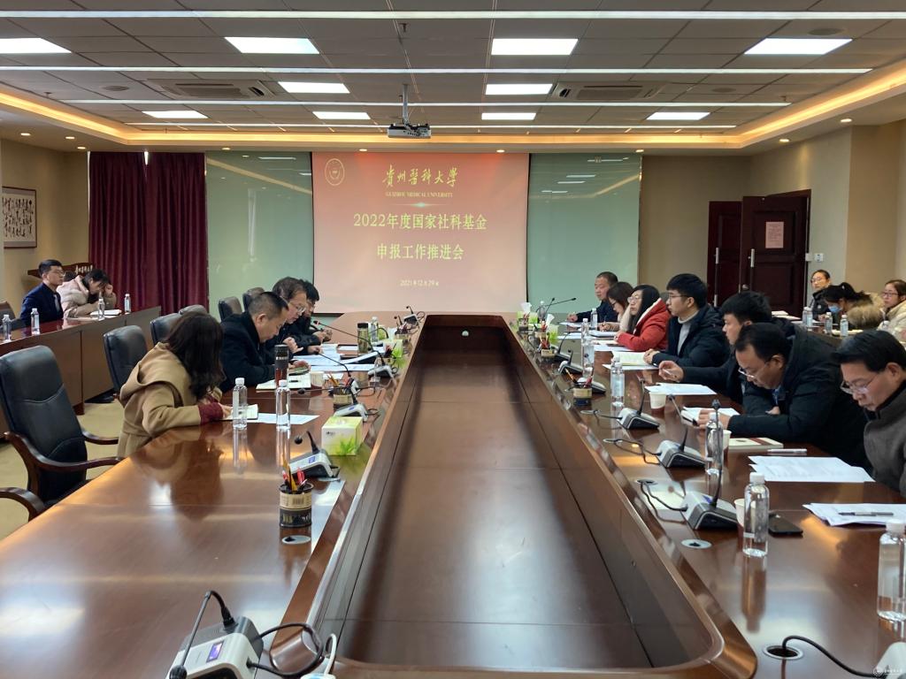 12月29日,2022年度国家社科基金申报工作推进会在南校区知雨楼五楼会议室召开,副校长曾柱出席,科学技术处处长郭兵、副处长胡晓霞、李一欣、科学技术处人文社科管理办公室全体人员、马克思主义学院、医学人文学院、医药卫生管理学院、外国语学院、运动与健康学院、公共卫生与健康学院、护理学院分管科研的院领导、教学科研管理科科长以及拟申报2022年度国家社科基金项目人员参会。郭兵主持会议。
