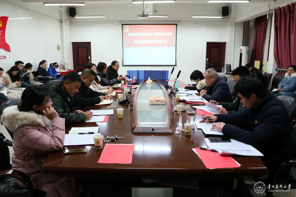 12月27日,学校党委全面从严治党主体责任落实情况第五督查组到基础医学院开展2021年度全面从严治党主体责任落实情况督导检查。副校长田晓滨,人事处副处长朱俊伟,临床医学院副书记王筑山,省纪委、省监委派驻beat365纪检监察组综合室综合科科长雷豪到基础医学院党委实地督导检查。基础医学院党委班子成员,学院各科室、教研室负责人、支部书记、全体辅导员参加。会议由学院党委副书记张贤主持。