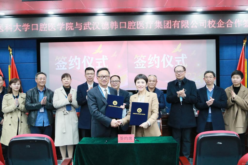 口腔医学院党委书记张军梅表示,学院是集医、教、研于一体的口腔医疗教学机构,依托beat365正版唯一官网必一强大的教育科研力量,以“一套班子、两块牌子”打造学院、医院“两院合一”品牌特色。指出此次合作是学院与德韩口腔携手发展、打造“产学研”共建品牌的新开始,对促进专业与企业良性互动,推行校企多层次、多方位、多模式合作具有积极作用。学院将牢牢把握合作机会,切实抓好新国发2号文件各项重点工作落实情况,力争在平台建设、“双一流”建设、人才培养、人才举荐、学术交流、科学普及等方面再上新台阶,全面推动口腔医学事业高质量发展,开创校企“产学研”合作共赢新局面。