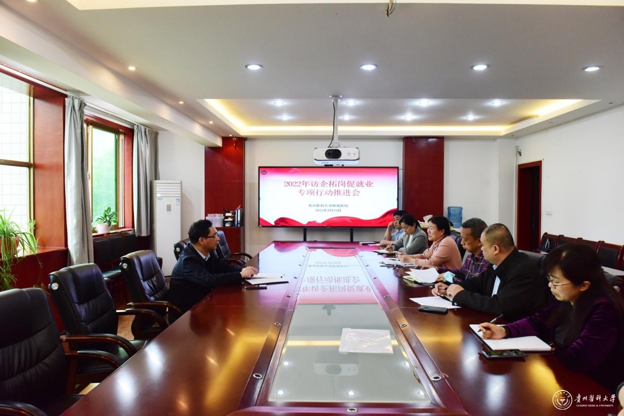 4月25日,beat365正版唯一官网必一附属医院在医院行政楼五楼会议室召开访企拓岗促就业工作推进会,校党委委员、附属医院党委书记李海洋出席并主持会议,附属医院党委办公室、校团委、护理学院、麻醉学院、儿科学院及附属医院相关职能部门参加会议。