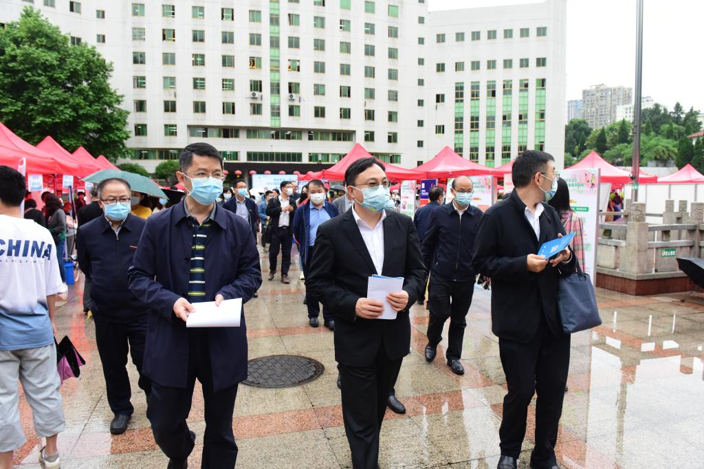 5月27日,贵阳贵安“筑人才·强省会”2022届在黔高校毕业生就业创业行动beat365正版唯一官网必一专场线下招聘活动举行,贵阳市委副书记陶平生到场指导并讲话。校党委副书记刘文、汤磊,副校长曾柱、蒋红梅参加。