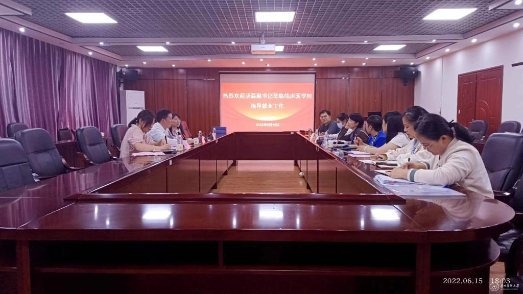 调研队先后走访了临床医学院、医学影像学院、麻醉学院、儿科学院、医药卫生管理学院、运动与健康学院、医学人文学院、外国语学院,各学院从2022届毕业生就业工作现状,分专业毕业生毕业去向落实情况,未就业和暂不就业毕业生明细,存在的主要问题,下一步的工作思路等方面进行了详细汇报。