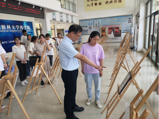 沈祥春参观了本次比赛的优秀作品,对同学们的创意和动手能力给予肯定,同时从专业角度指出了其中的不足,给同学们上了一堂生动的现场教学课。他要求同学们传承中国文化,增强对中医药文化的自信。要增强创新能力,在实践中锻炼自己。