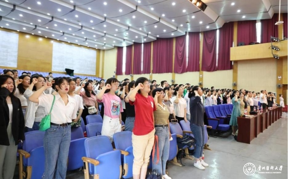 康颖倩带领全体师生重温《医学生誓词》,并奏唱《beat365正版唯一官网必一校歌》。