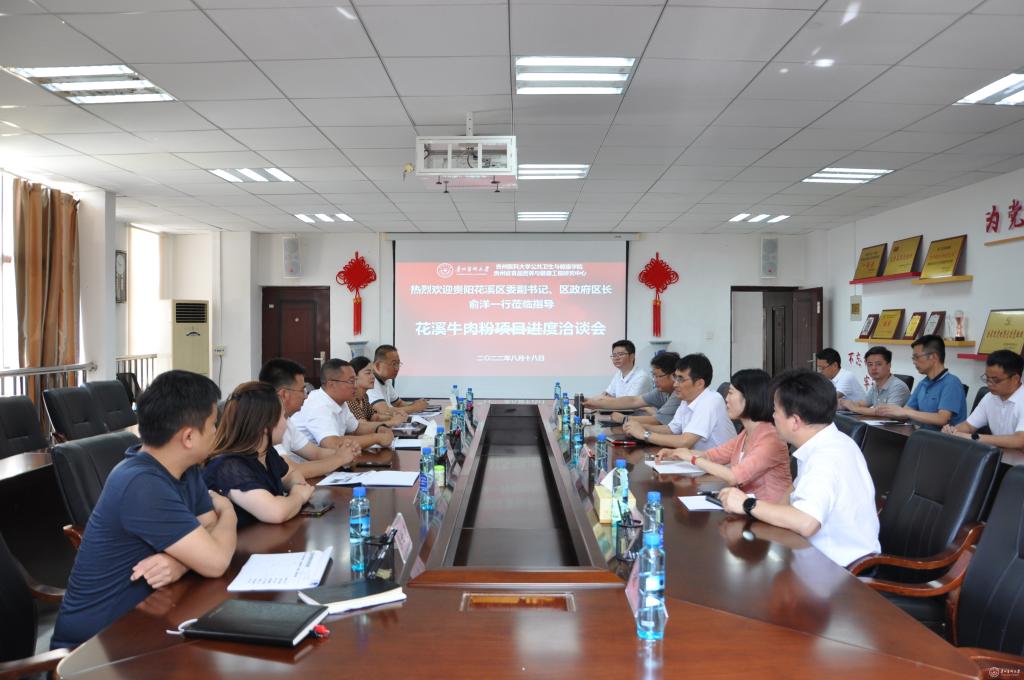 8月18日,花溪区区委副书记、区政府区长俞洋率区文旅局、区商务和投资促进局、区旅文公司等相关部门负责人到beat365公共卫生与健康学院参观考察。校党委副书记、校长罗鹏出席座谈会,科技创新与产业发展处负责人、公共卫生与健康学院党政班子及贵州省食品营养与健康工程研究中心团队主要成员参加。