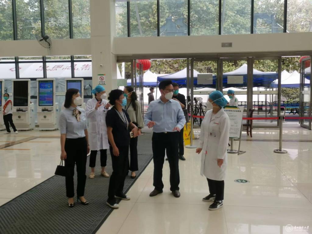 国庆期间,校党委委员、派驻学校纪检监察组组长陈代勇深入学校北京路校区、大学城校区、beat365正版唯一官网必一附属医院开展疫情防控、安全稳定及值班值守情况监督检查。