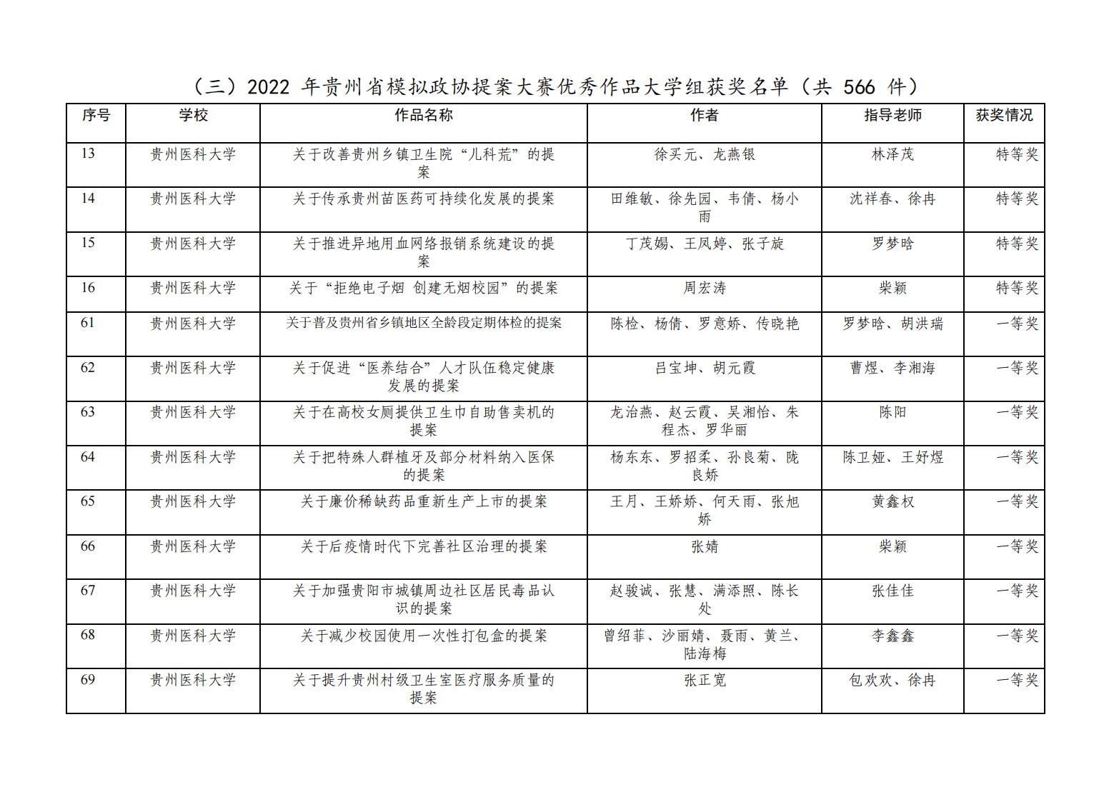 近日,团省委、省学联联合下发了《关于公布2022年贵州省青少年模拟政协提案大赛评选结果的通报》,beat365正版唯一官网必一团委被评为“优秀组织单位”,儿科学院“关于改善贵州乡镇卫生院‘儿科荒’的提案”等4个作品被评为“特等奖”,麻醉学院“关于普及贵州省乡绅地区全龄段定期体检”等11个作品被评为“一等奖”,运动与健康学院“关于贵州省遵义市凤冈县锌硒茶提质发展的提案”等13个作品被评为“二等奖”,生物与工程学院(健康医药现代产业学院)“关于有效普及无障碍卫生间的提案”等17个作品被评为“三等奖”。