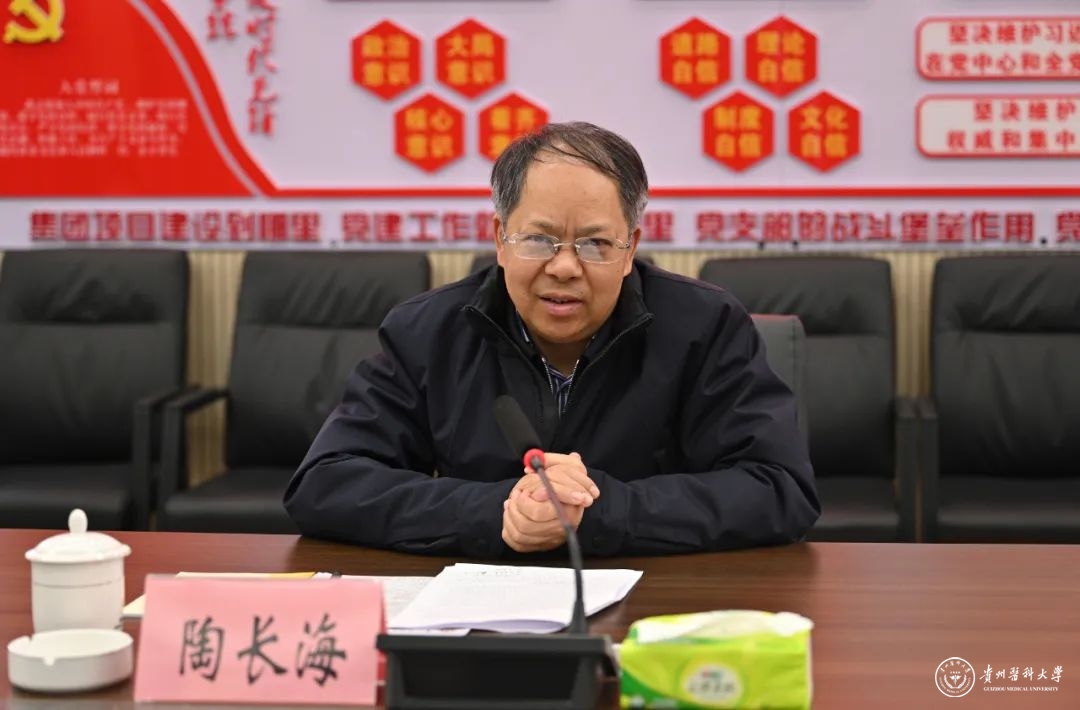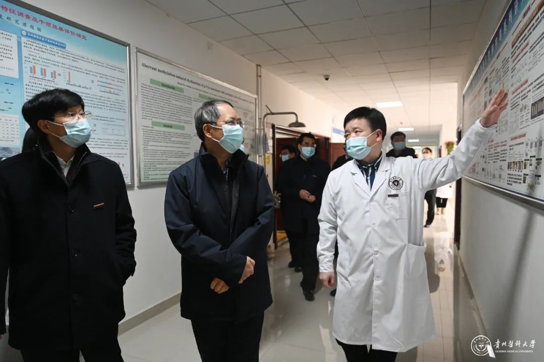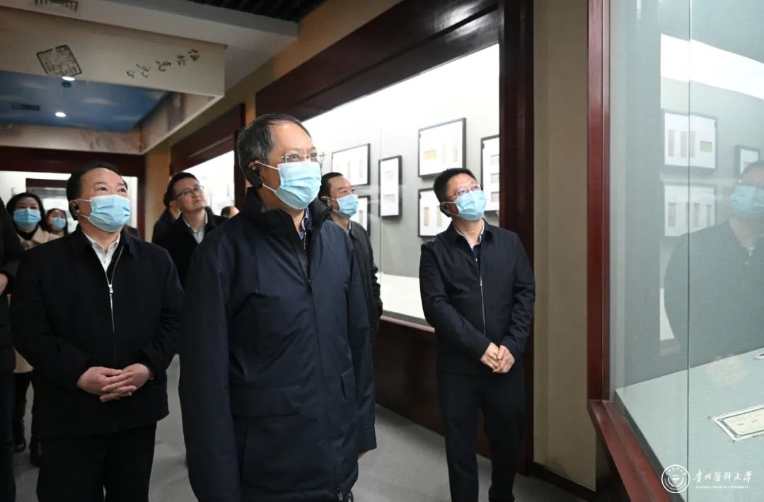 在beat365正版唯一官网必一,陶长海首先来到校史馆,听取学校发展历程和规划建设情况汇报,勉励学校要有序推进新校区项目建设,并以此为契机,加快推进教育医疗“双提升”,为全省卫生健康事业高质量发展提供有力的科技支撑和可靠的人才保障。在公共卫生与健康学院,陶长海走进教学示范中心、科研实验室,了解疾病研究防治和参与疫情防控等情况,强调要加大复合型、应用型公共卫生人才培育力度,进一步完善全省疾病预防控制体系,织牢织密公共卫生防护网。