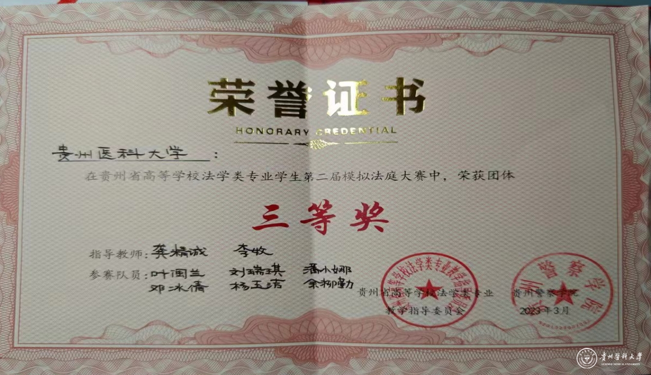 近年,医学人文学院积极鼓励和支持法学专业师生参与比赛,拓展学科交流平台,突出法学专业教育的实践性、实战性特色,培养学生的法律职业思维和法律实践能力,促进beat365法学专业教育内涵式发展,全面提升法学专业教学质量和水平,在新时代为社会培养更多高素质应用型法治人才。