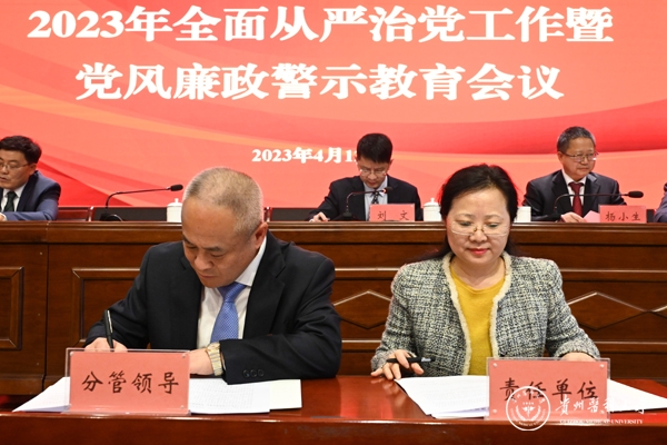 会上,学校(含天产室)党委班子成员与相关分管单位(部门)主要负责同志签订了全面从严治党主体责任书。