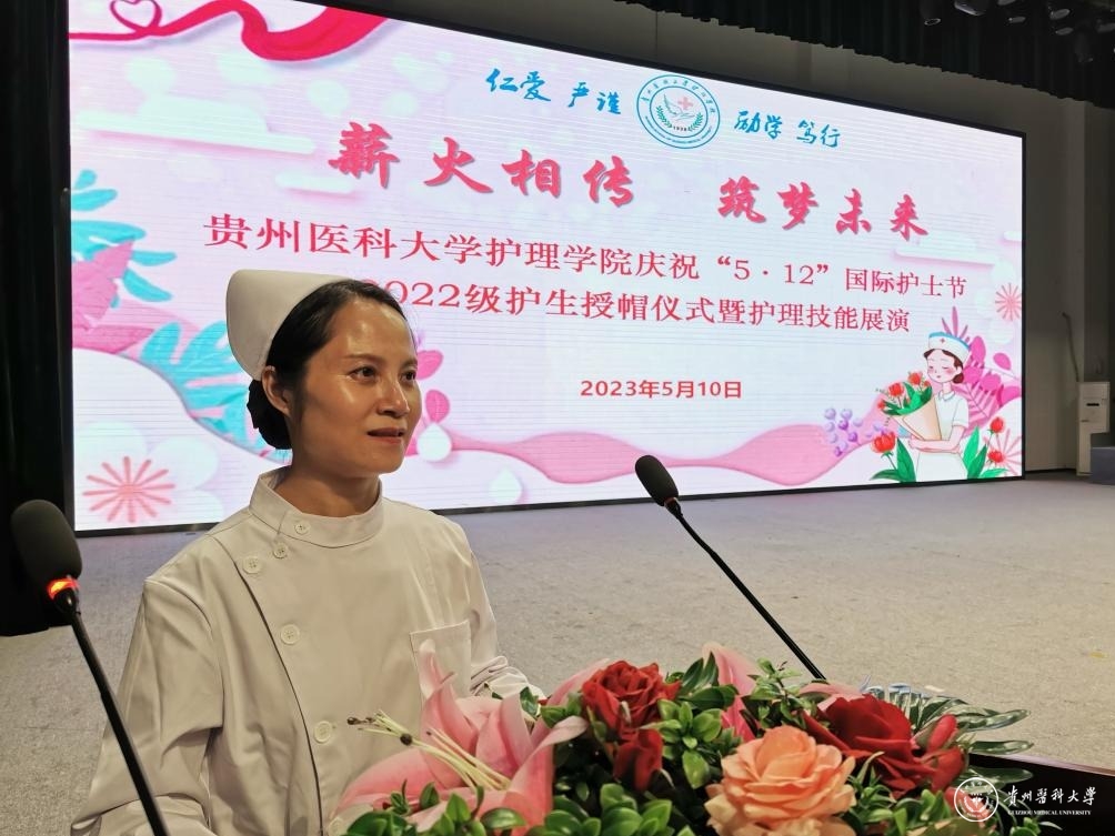 护理学2022级2班王雨慈代表全体护理学专业学生发言。全体同学表示,将努力学习、刻苦钻研,用生命守护生命,为我国的护理事业奋斗终生。
