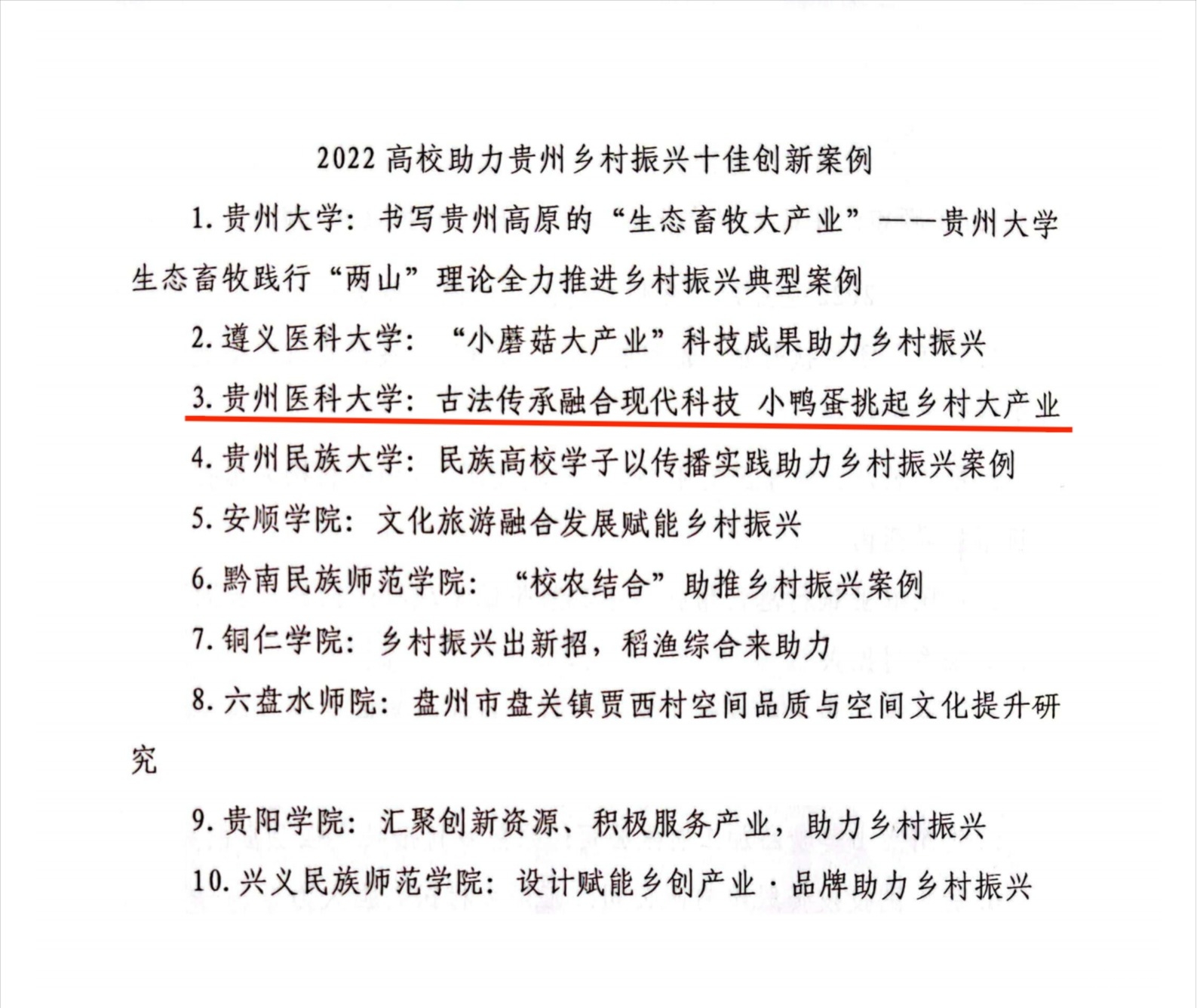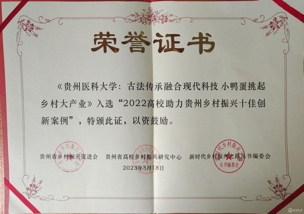 近日,贵州省高校乡村振兴2023年高端学术论坛在安顺学院召开,beat365助力乡村振兴案例《beat365正版唯一官网必一:古法传承融合现代科技 小鸭蛋挑起乡村大产业》入选“2022高校助力乡村振兴十佳创新案例”,并获表彰。