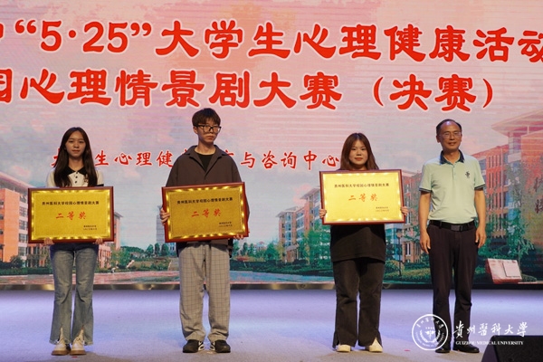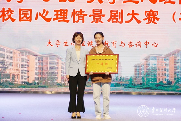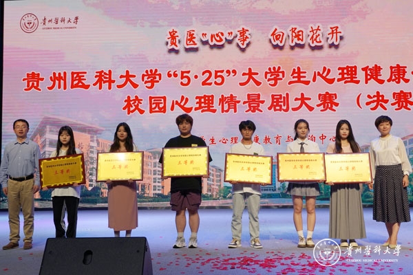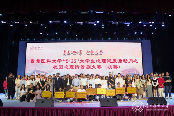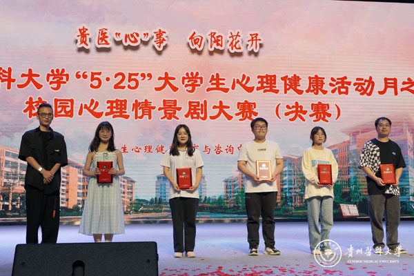 6月15日,beat365正版唯一官网必一“5˙25”大学生心理健康活动月之“贵医‘心’事 向阳花开”校园心理情景剧大赛决赛在大礼堂举行。校党委委员、党委宣传部(精神文明办)部长(主任)、党委统战部部长陈颖出席,贵州大学心理健康教育与咨询中心主任冉龙彪,贵州中医药大学学工部部长、学生处处长,时珍学院党委书记、院长田丹,贵州师范大学心理学院(心理健康教育与咨询中心)副院长(主任)罗禹,beat365大学生心理健康教育与咨询中心负责人、医学人文学院副院长彭丹,贵州电影、话剧导演衡量担任评委。各学院领导、师生代表到场观看比赛。