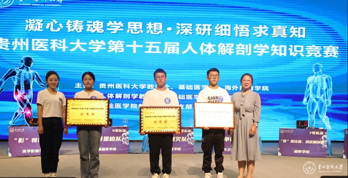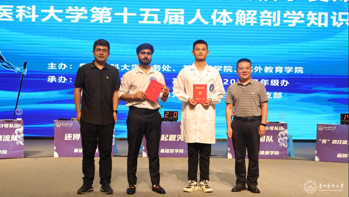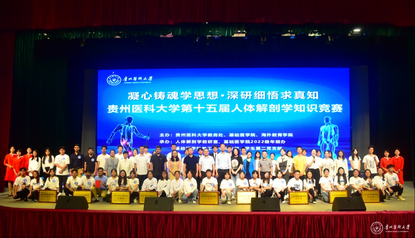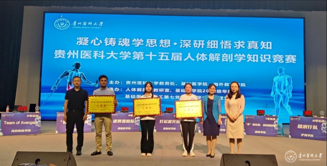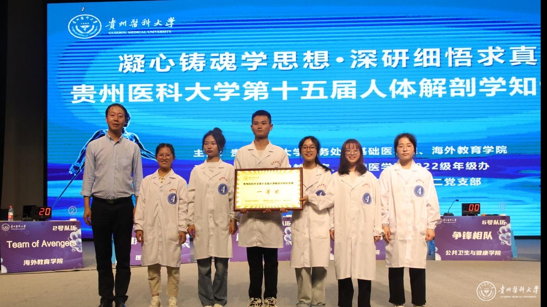经过激烈角逐,基础医学院“还得是咱队”获得一等奖,基础医学院“灯起题灭队”和医学影像学院“影领潮流队”获得二等奖,海外教育学院“Team of Avengers”、儿科学院“啊对对队”、口腔医学院“智齿艺术家队”获得三等奖,公共卫生与健康学院“争锋相队”、麻醉学院“医路狂飙,搞定解剖队”、护理学院“踏浪行队”获优秀奖,喻治华和ROOH ULLAH两位同学获得优秀个人奖。