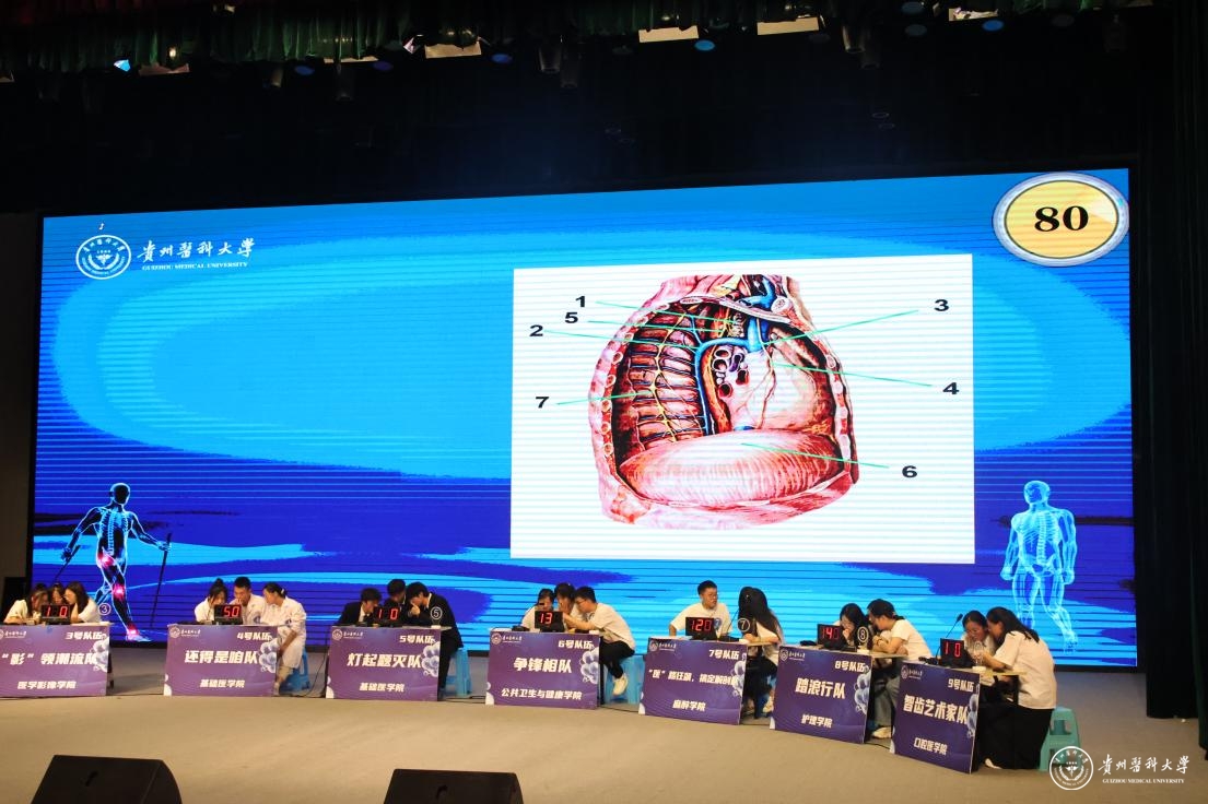 竞赛设“扬帆起航正当时(小组必答题)”“百舸争流千帆竞(团体抢答题)”“纸上得来终觉浅(摸骨寻源、标本辨识)”“心有灵犀一点通(猜解剖名词)”“柳暗花明又一村(加赛环节)”五个环节。竞赛过程中,评委的专业点评、选手的精彩答题、场下观众的积极互动获得了一次次热烈掌声。
