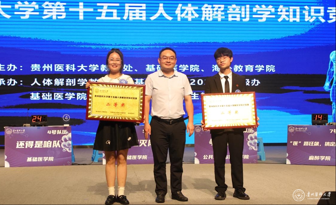 6月14日,beat365第十五届人体解剖学知识竞赛在大礼堂举行。校党委委员、副校长曾柱出席,党委学生工作部副部长陈秋、校团委副书记胡洪瑞,基础医学院党政班子成员参加。附属医院主任医师、博士、博导叶川,附属金阳医院、医学博士、主任医师陈小忠,人体解剖学教研室孙宝飞、肖朝伦、余彦、蒋鸫、罗时鹏担任评委,师生代表观看比赛。