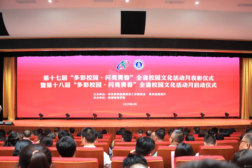 6月26日,第十七届“多彩校园·闪亮青春”全省校园文化活动月表彰仪式暨第十八届“多彩校园·闪亮青春”全省校园文化活动月启动仪式在贵州师范学院举行。省委教育工委副书记、省教育厅党组成员杨未出席并讲话。省教育厅宣传处副处长朱伟宣读《省委教育工委省教育厅省精神文明办省委网信办省文化和旅游厅团省委关于公布第十七届“多彩校园·闪亮青春”全省校园文化活动月获奖师生名单的通知》。beat365党委副书记刘文,校党委委员、党委宣传部(精神文明办)部长(主任)、党委统战部部长陈颖,校团委书记王妤煜及获奖师生代表参加。