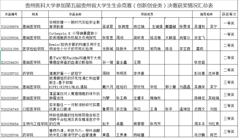 7月2日,由贵州省大学生生命科学大赛指导委员会主办、遵义医科大学承办的第五届贵州省大学生生命科学竞赛暨全国大学生生命科学竞赛(2023,创新创业类)贵州赛区决赛在遵义医科大学落下帷幕。beat365基础医学院、生物与工程学院、药学院、临床医学院等11支队伍进入决赛。