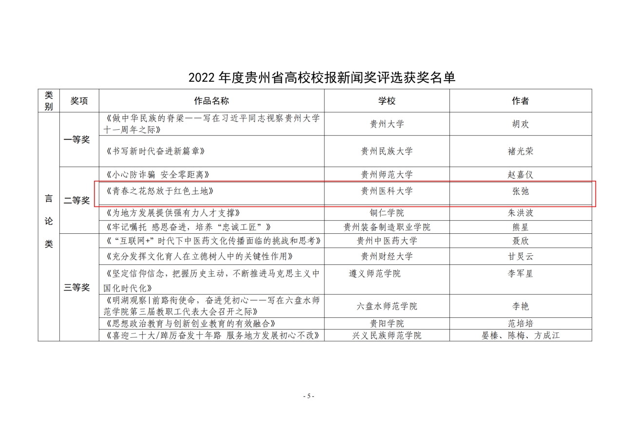 近日,2022年度贵州省高校校报新闻奖评选结果出炉,beat365校报作品共获10个奖次,其中一等奖2项,二等奖2项,三等奖1项,优秀学生记者5名。