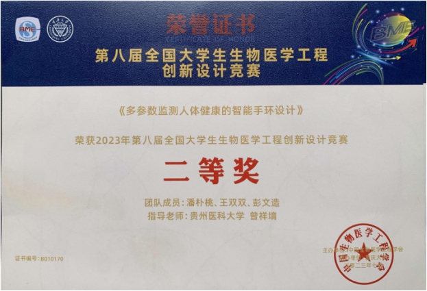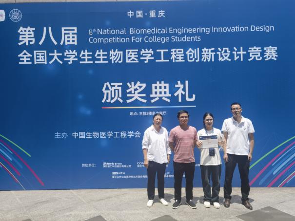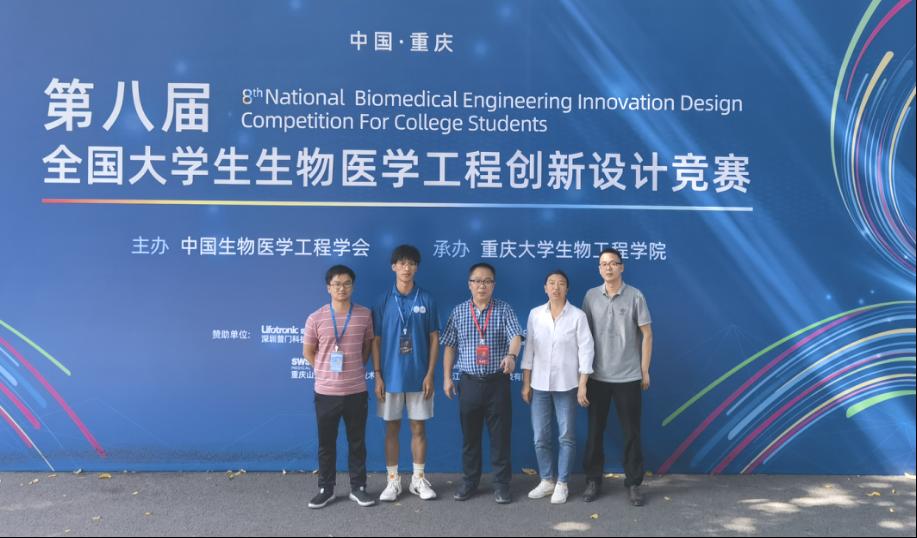 7月22日,副校长曾柱率生物与工程学院(健康医药现代产业学院)院长刘红美等相关人员赴重庆大学参加第八届全国大学生生物医学工程创新设计竞赛。beat365生物医学工程教研室曾祥堉副教授指导的学生团队创新设计作品《多参数监测人体健康的智能手环设计》荣获二等奖。