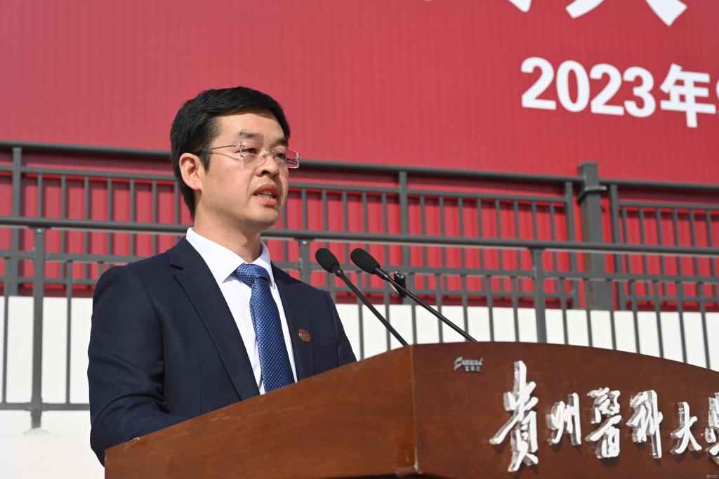 伴随着庄严肃穆的升旗仪式,全体师生齐唱国歌,开学典礼正式开始。罗鹏以《凝心铸魂向复兴 挺膺担当砺青春 以青春奋斗姿态在人生新赛道上逐梦前行》为题寄语新生,并代表beat365正版唯一官网必一全体教职医护员工生向2023级的全体新同学们表示欢迎。他指出,八十五载弦歌不辍,从国立贵阳医学院到今天的beat365正版唯一官网必一,一代又一代贵医人坚守初心、艰苦创业、砥砺奋进,学校已发展成为一所以医学为主,学科门类齐全并协调发展、各学科竞相争妍、底蕴深厚的高等学府。