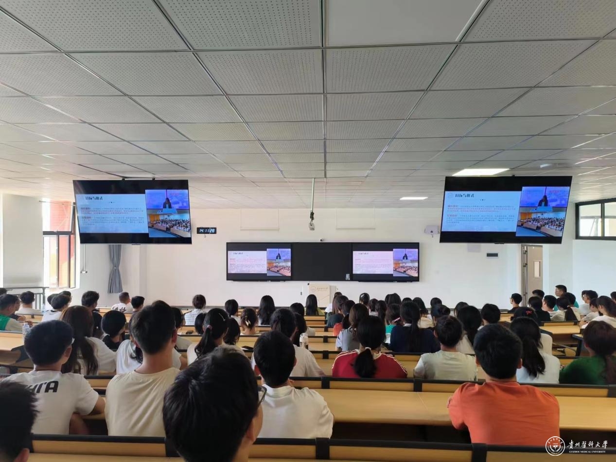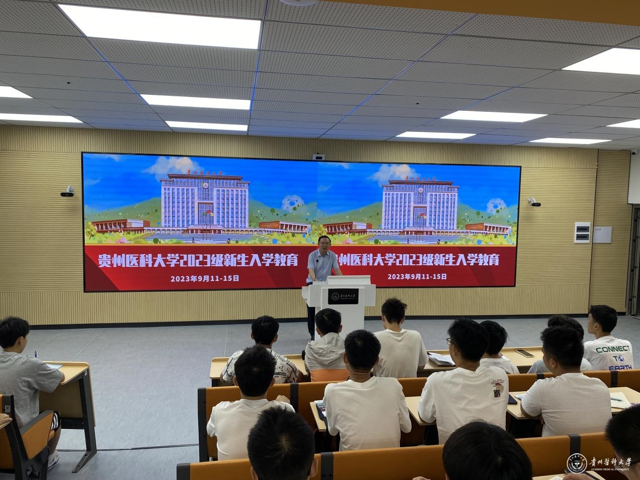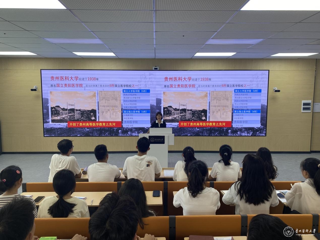 校党委委员、党委宣传部(精神文明办)部长(主任)、党委统战部部长陈颖以《传承贵医校史,弘扬贵医文化》为题,为同学们带来了一堂生动的爱校荣校教育课,从beat365的历史沿革、发展概况、贵医文化等角度,向新生全面介绍学校的悠久历史和辉煌成就。