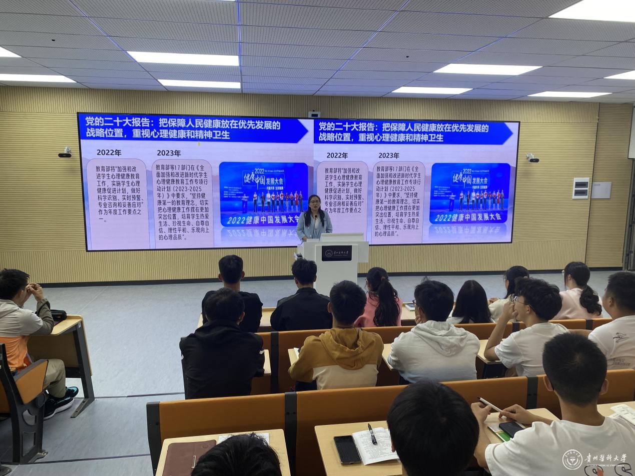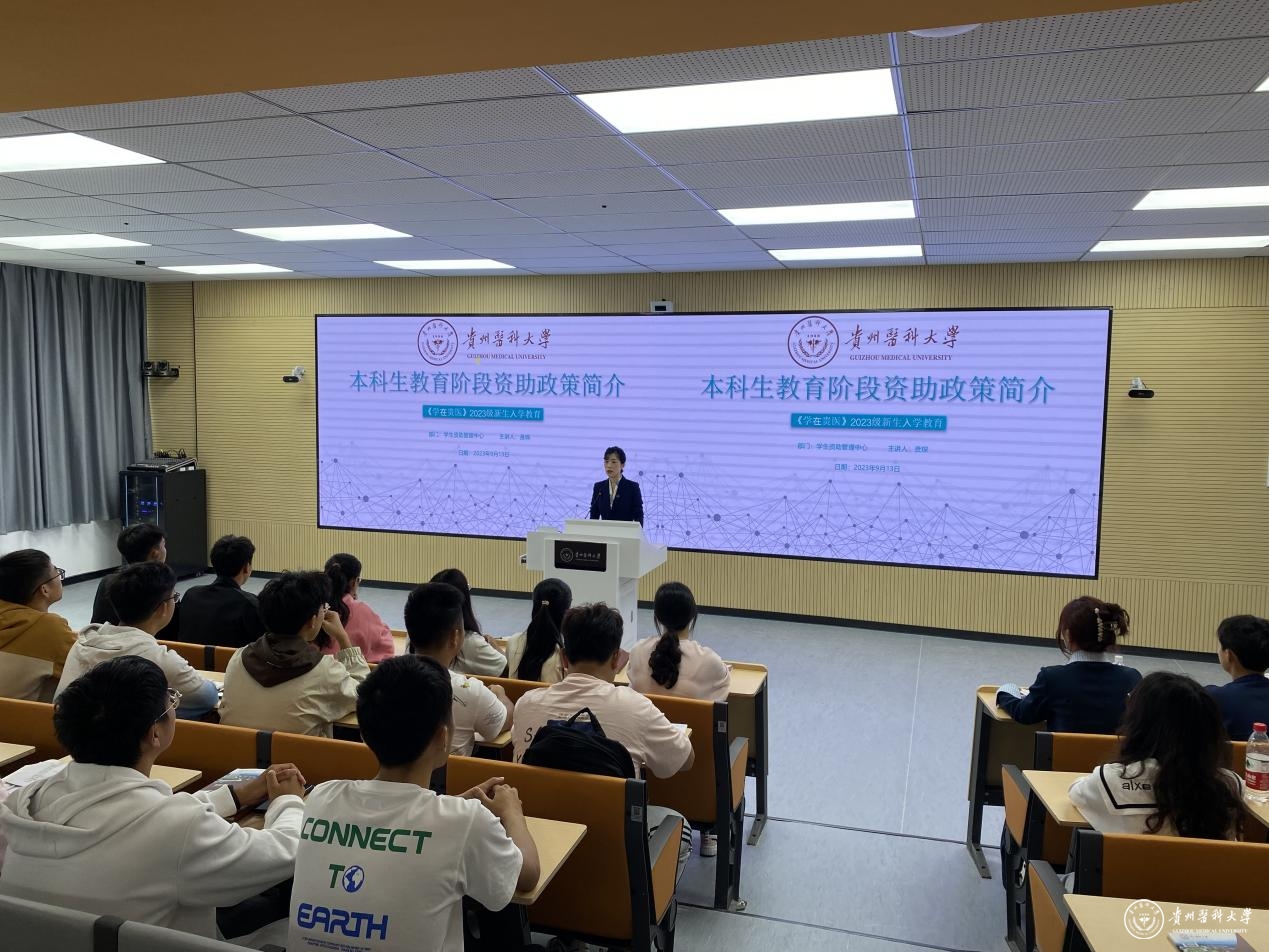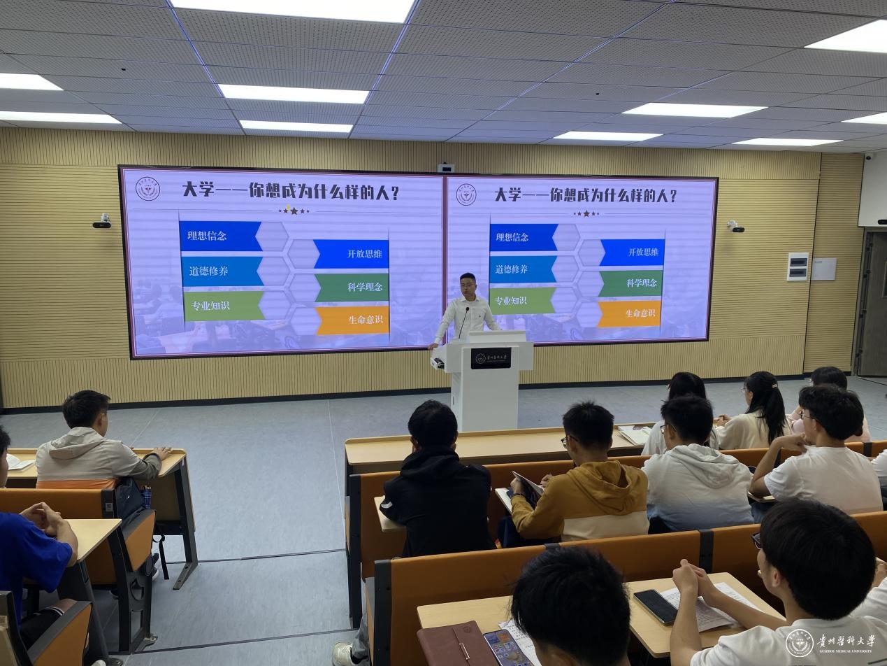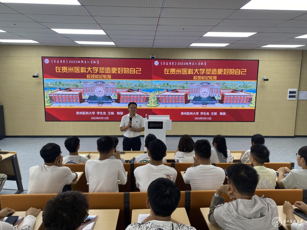 校党委委员、党委宣传部(精神文明办)部长(主任)、党委统战部部长陈颖以《传承贵医校史,弘扬贵医文化》为题,为同学们带来了一堂生动的爱校荣校教育课,从beat365的历史沿革、发展概况、贵医文化等角度,向新生全面介绍学校的悠久历史和辉煌成就。