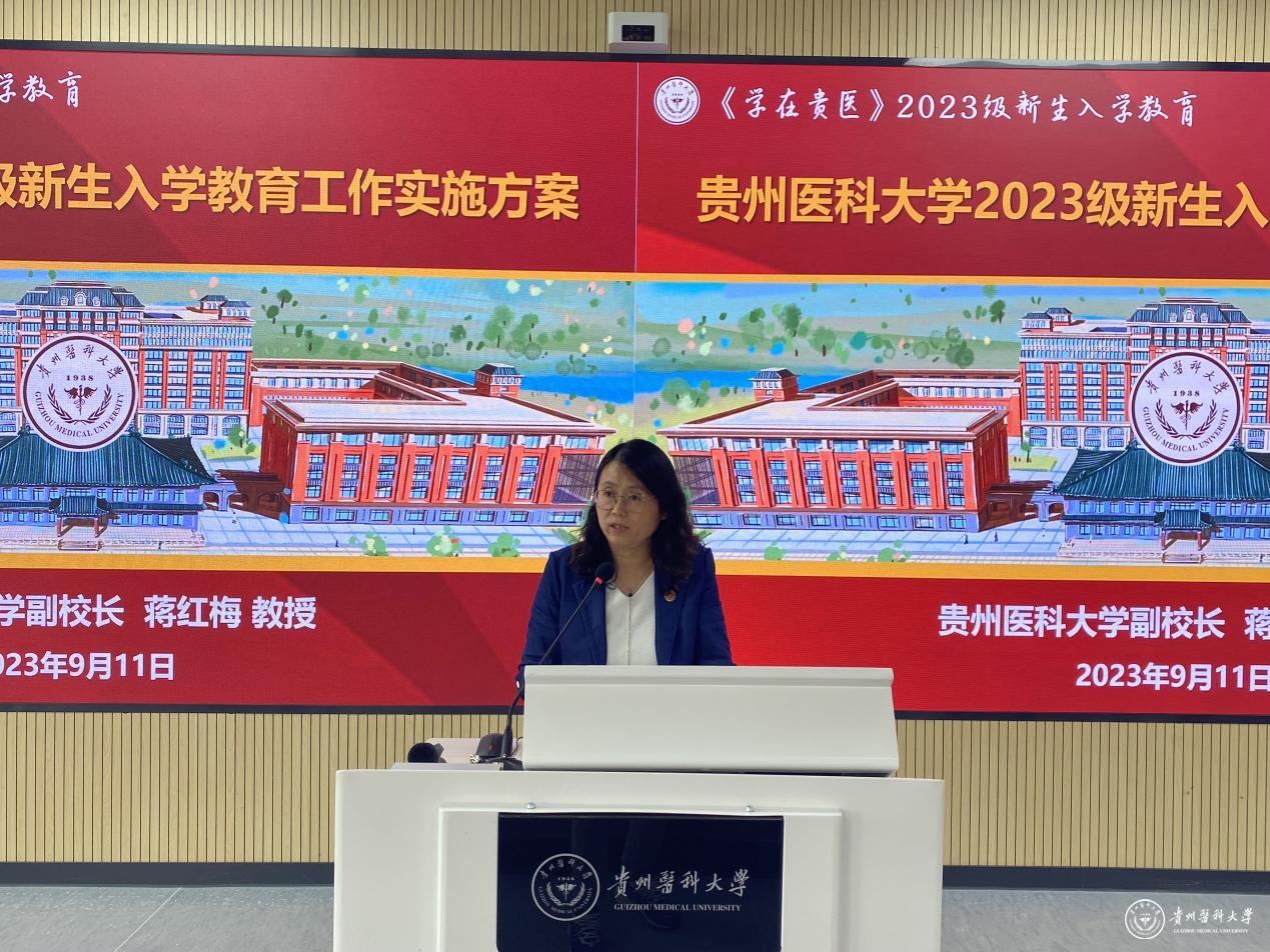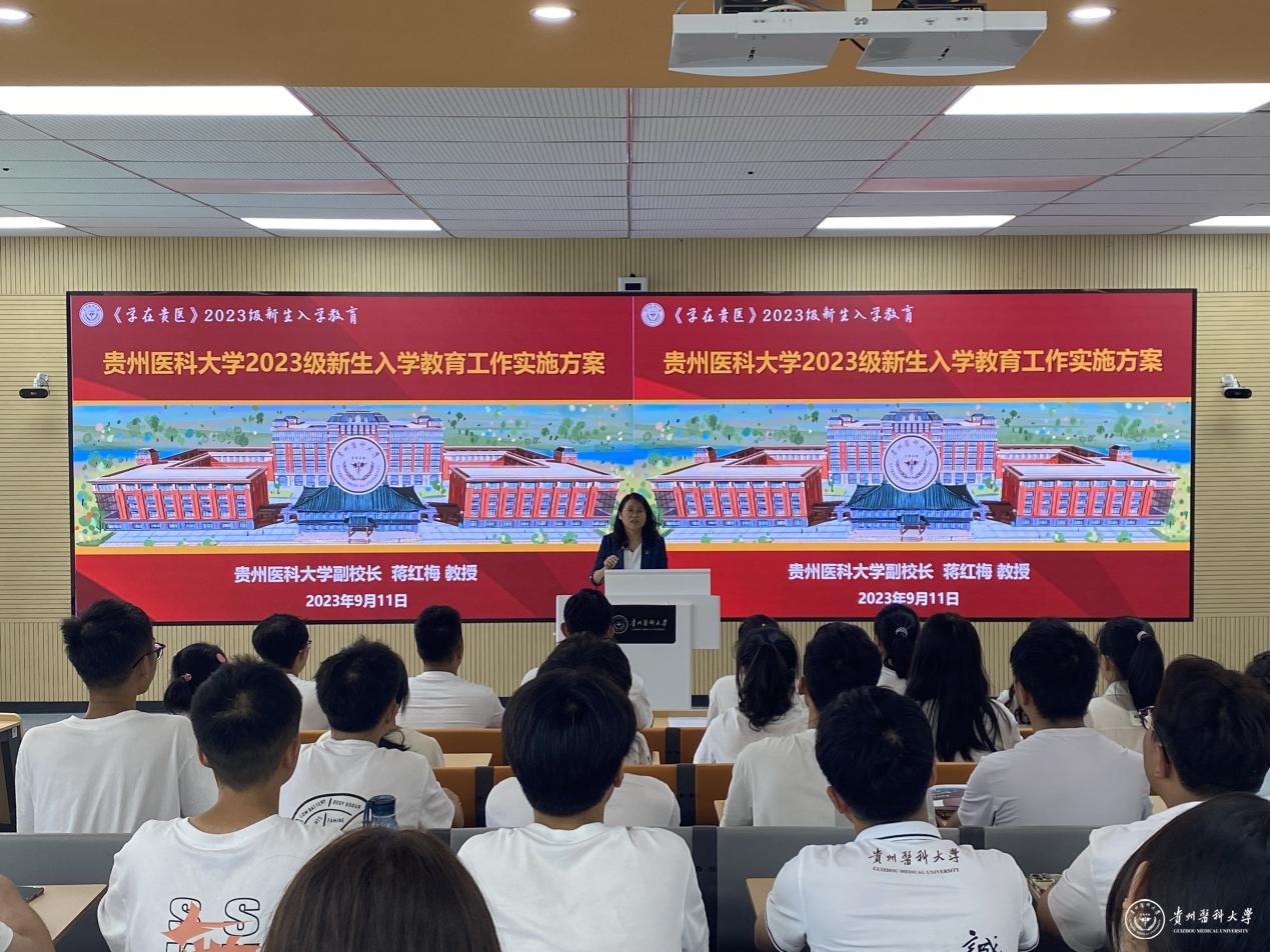 教学周首日,校党委委员、副校长蒋红梅给全体新生解读《beat365正版唯一官网必一2023级新生入学教育工作实施方案》,介绍beat365新生入学教育的具体安排和要求。蒋红梅强调,新生入学教育是大学教育的起点,是学生培养工作的重要组成部分,对大学生健康成长、全面发展有着深远的影响,对系好同学们大学的“第一颗扣子”至关重要。希望同学们珍惜青春的美好时光,不负韶华,努力奋斗,坚定理想信念,锤炼过硬本领,为助力贵州和beat365正版唯一官网必一的高质量发展贡献自己的青春力量。