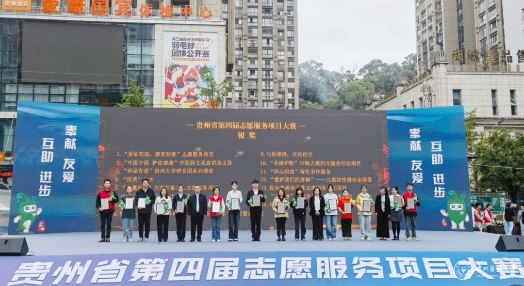 10月10日至10月11日,贵州省第四届志愿服务大赛在黔南州都匀市举行,beat36522支队伍参加比赛,其中,生物与工程学院(健康医药现代产业学院)“科技助农·乡村振兴”项目、大健康学院“爱佑花蕊·康复助童”项目入围终评。经过现场路演、项目答辩和巡展问答等环节,生物与工程学院(健康医药现代产业学院)“科技助农·乡村振兴”项目获金奖,大健康学院“爱佑花蕊·康复助童”项目获银奖。