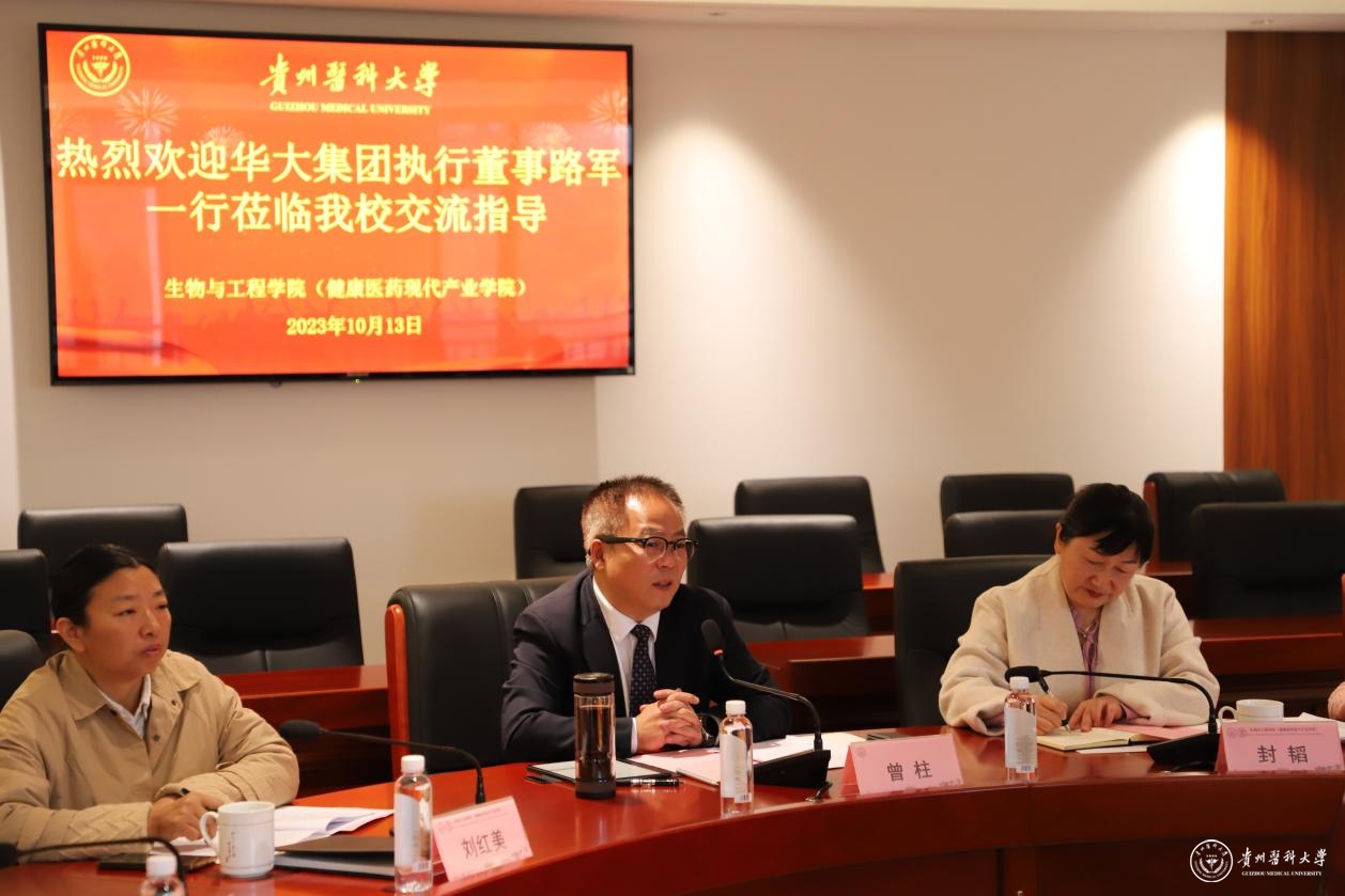 曾柱对路军一行的到访表示欢迎并介绍学校的基本情况,近年来,学校聚焦国家战略需求,着力以现代产业学院为抓手推动新医科、新工科融合发展,通过“引企入校”“遴聘产业导师”“校企共建课程”等方式,推动现代产业学院人才培养模式改革创新。曾柱指出,华大集团是生命科学领域全球领先的前沿研发机构,期待校企合作双方在人才联合培养、科研项目协同攻关、科技成果转化等方面取得务实成效。