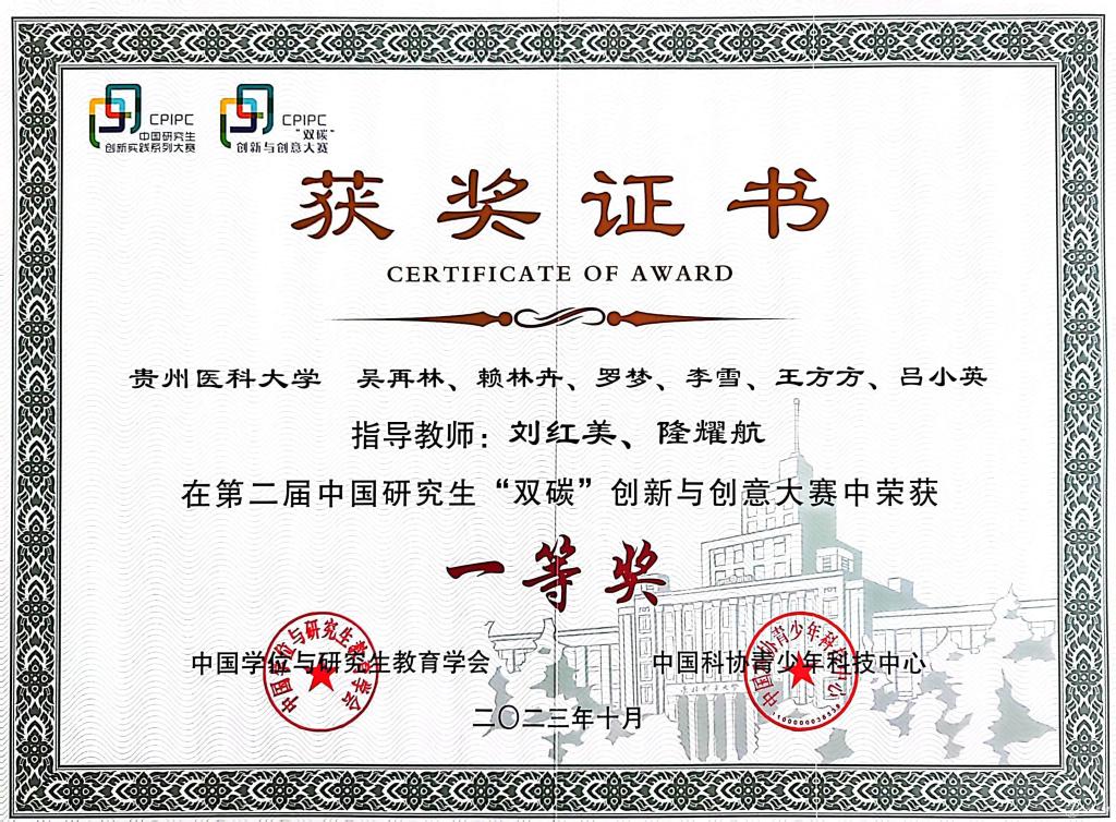 10月28日至29日,第二届中国研究生“双碳”创新与创意大赛决赛在哈尔滨举行。 beat365生物与工程学院(健康医药现代产业学院)院长刘红美教授、隆耀航副教授指导学生吴再林、赖林卉、罗梦、李雪、王方方、吕小英完成的“基于循环经济的喀斯特双碳探索与生态产出”项目经过初赛、复赛的层层角逐,成为全国唯一一个医科类院校在该项赛事上入围决赛的项目,并最终荣获全国一等奖。指导教师刘红美、隆耀航荣获“优秀指导教师”。